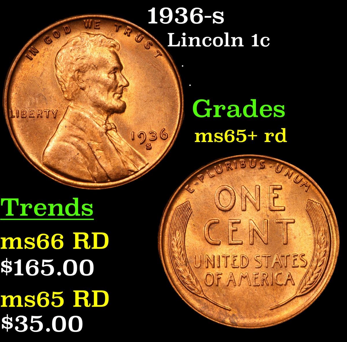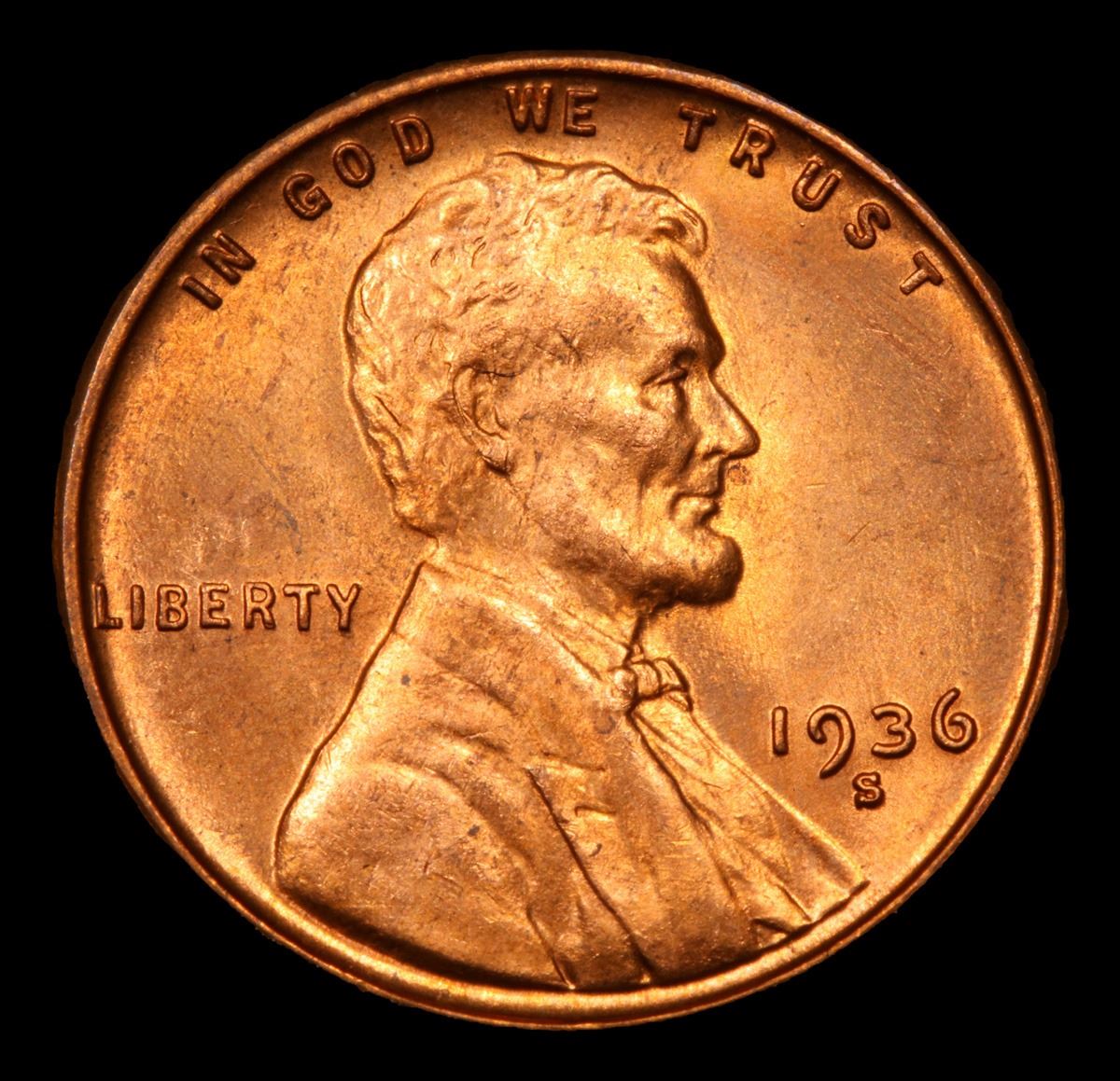 1936-s Lincoln Cent 1c Grades Gem+ Unc RD.