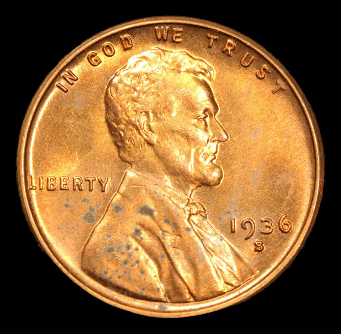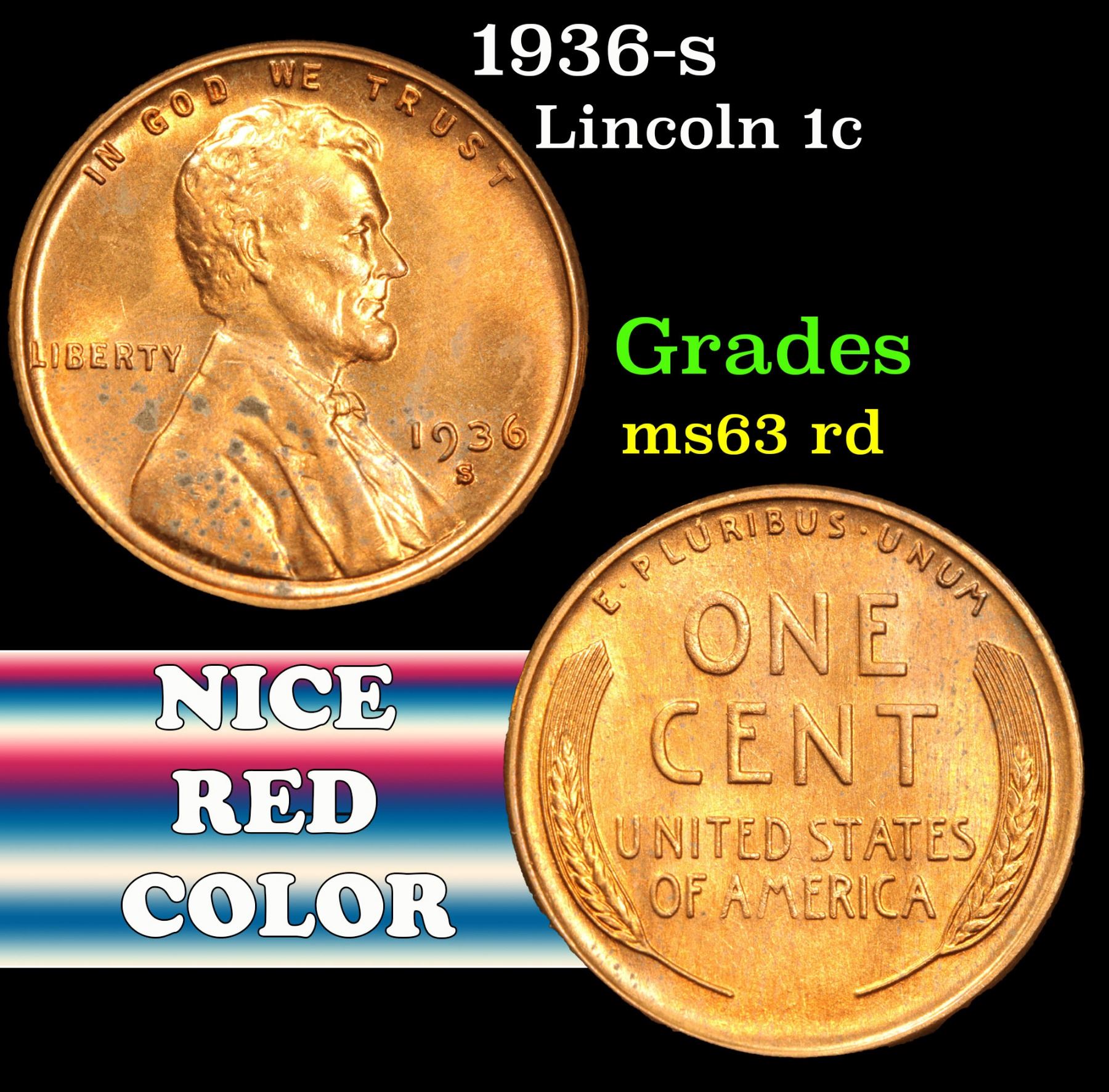 1936-s . . Lincoln Cent 1c Grades Select Unc RD.