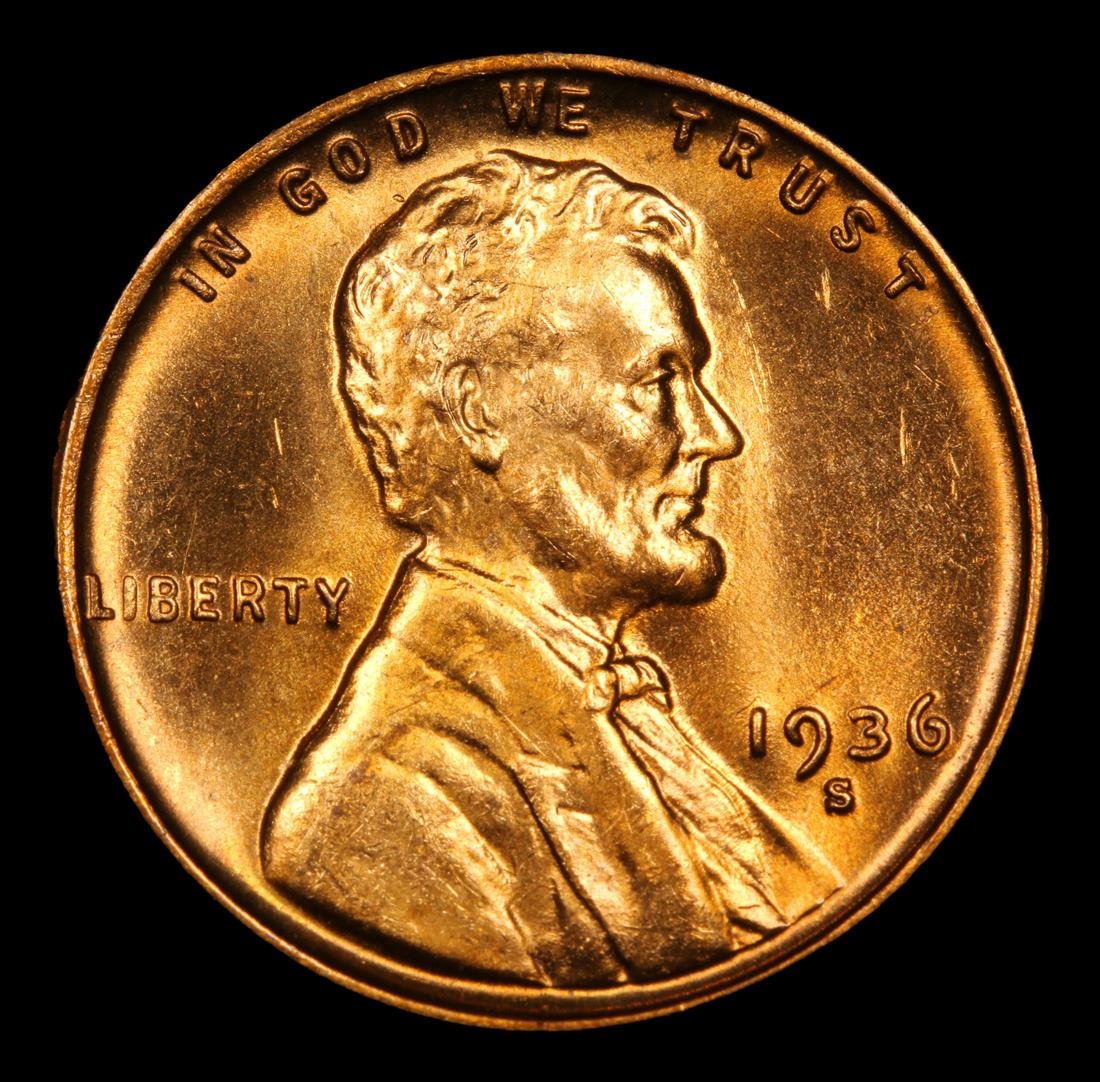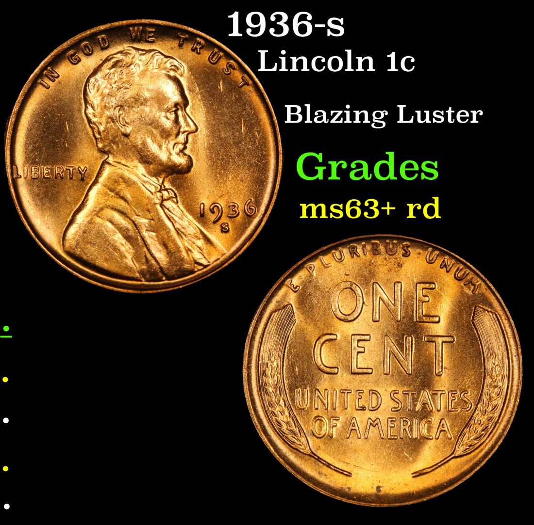 1936-s Blazing Luster . Lincoln Cent 1c Grades Select+ Unc RD.