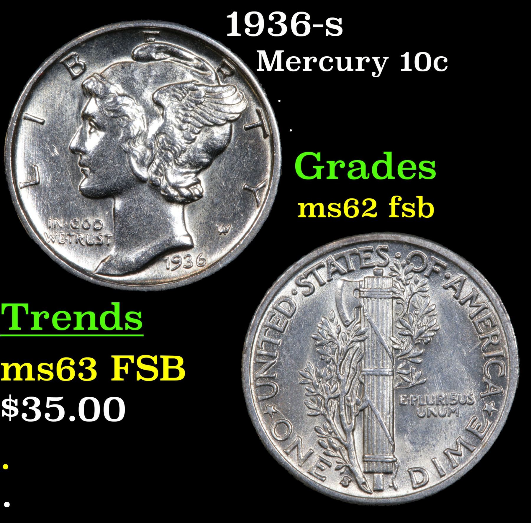 1936-s Mercury Dime 10c Grades Select Unc FSB.