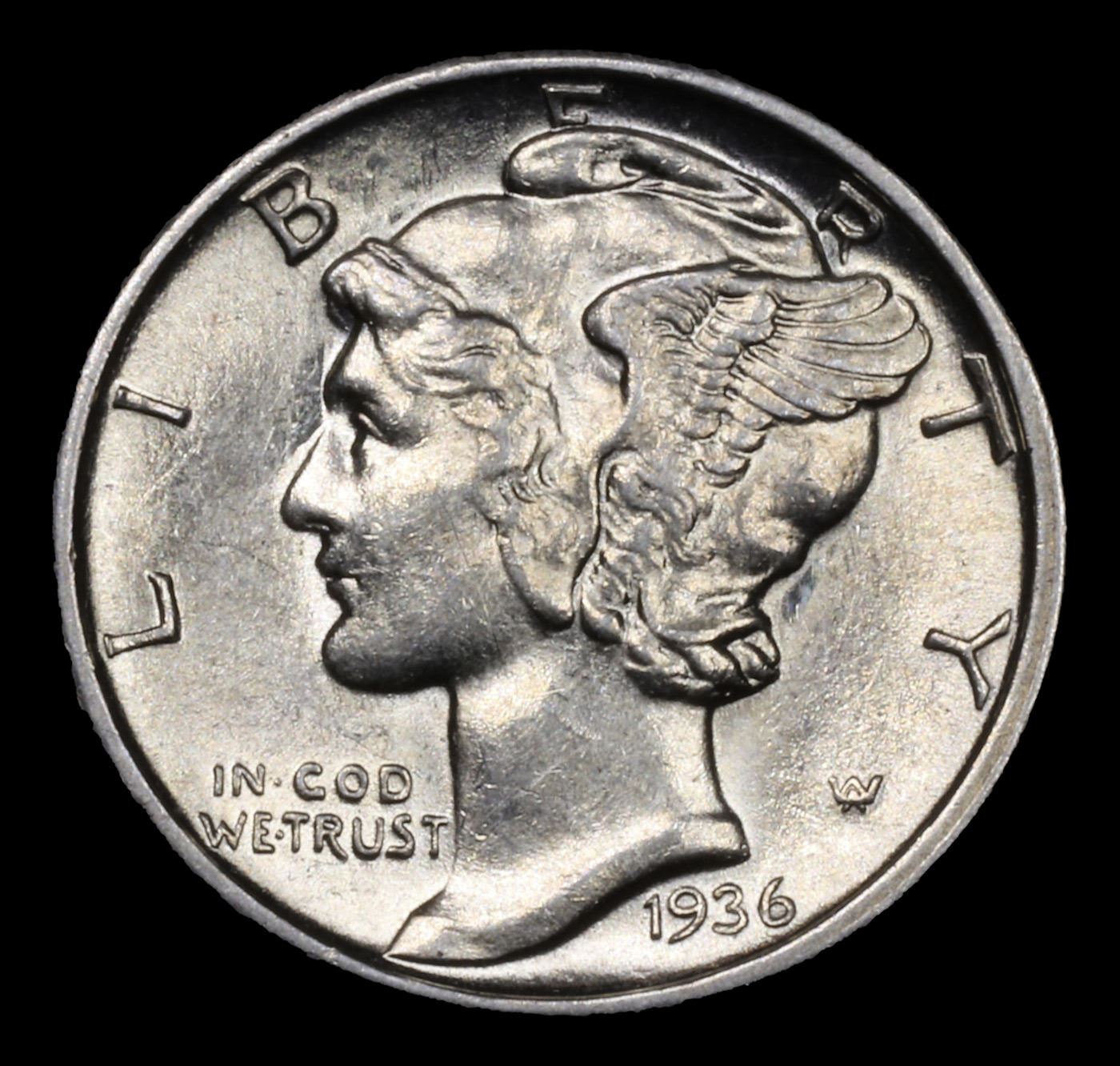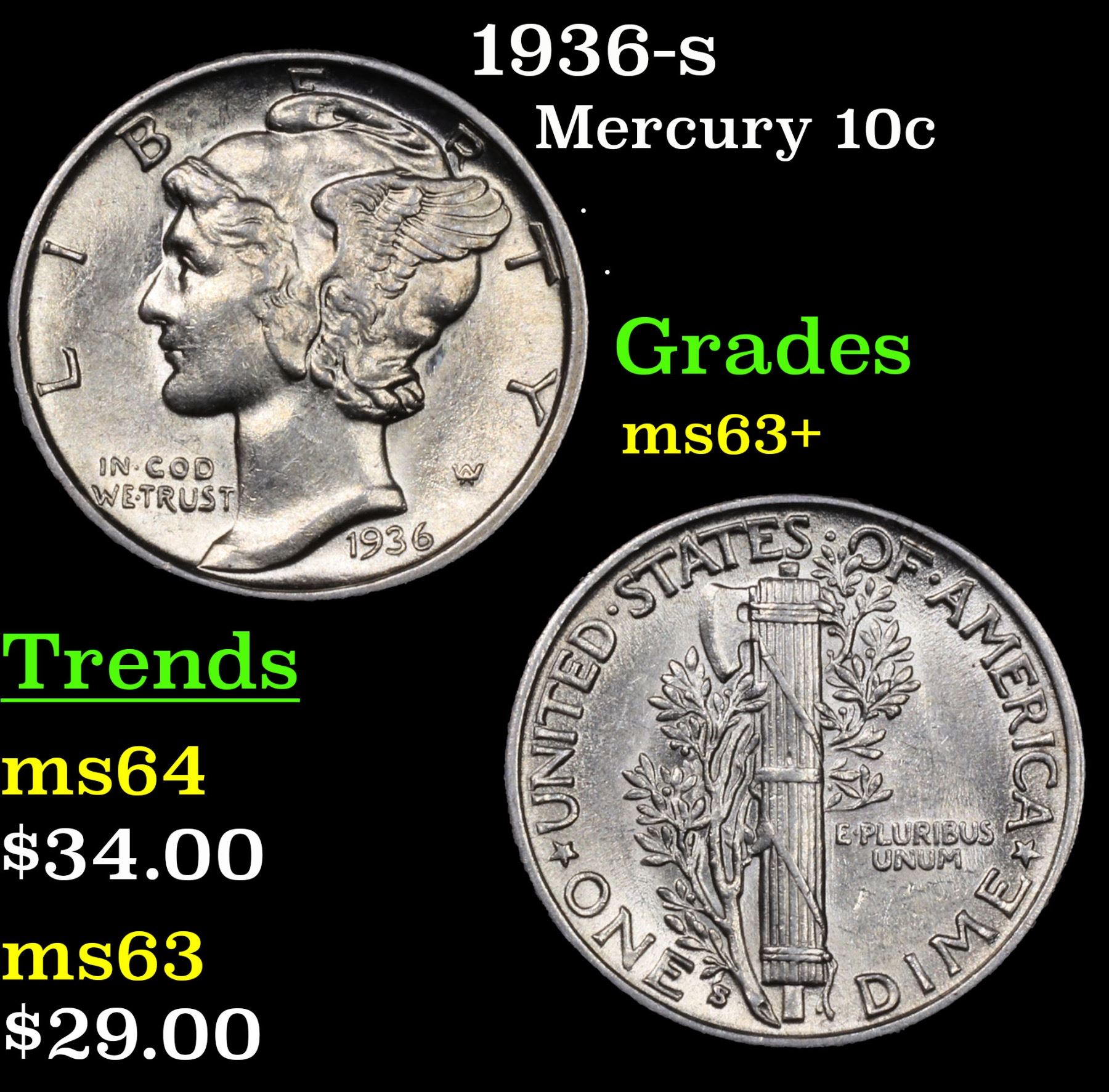 1936-s Mercury Dime 10c Grades Select+ Unc.