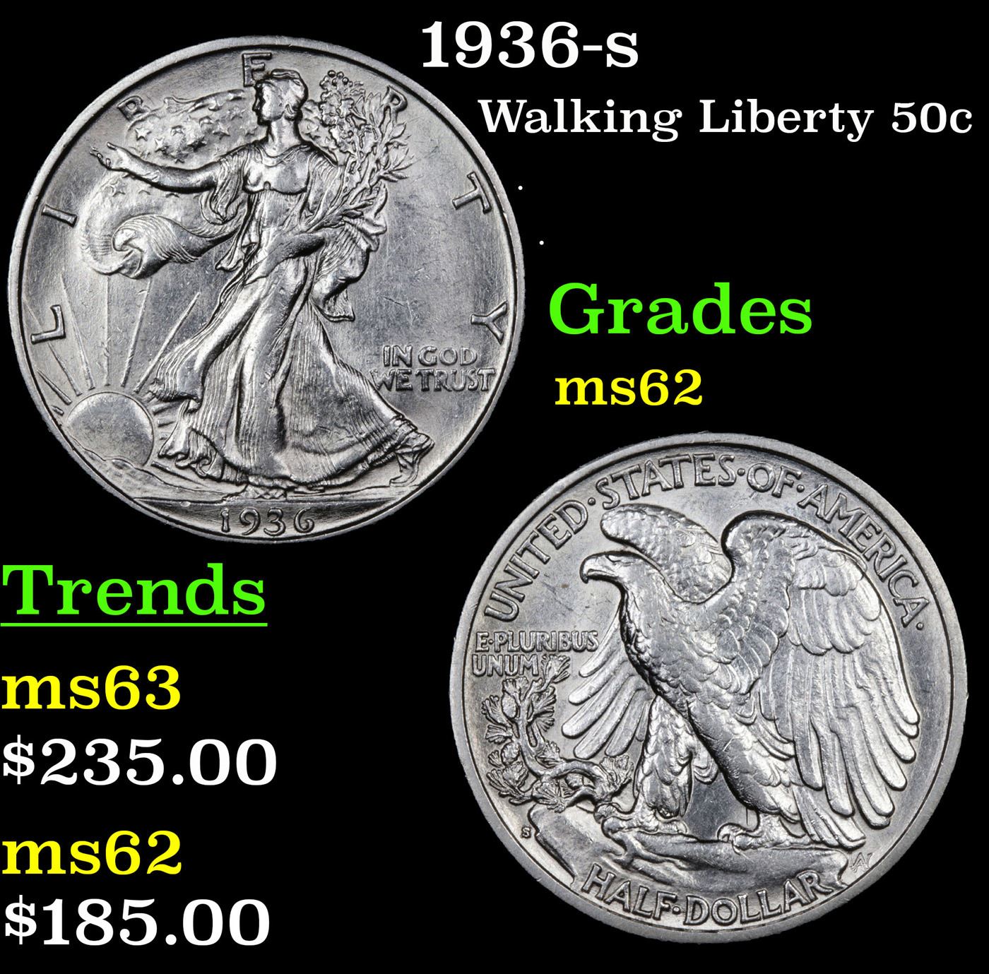 1936-s Walking Liberty Half Dollar 50c Grades Select Unc.