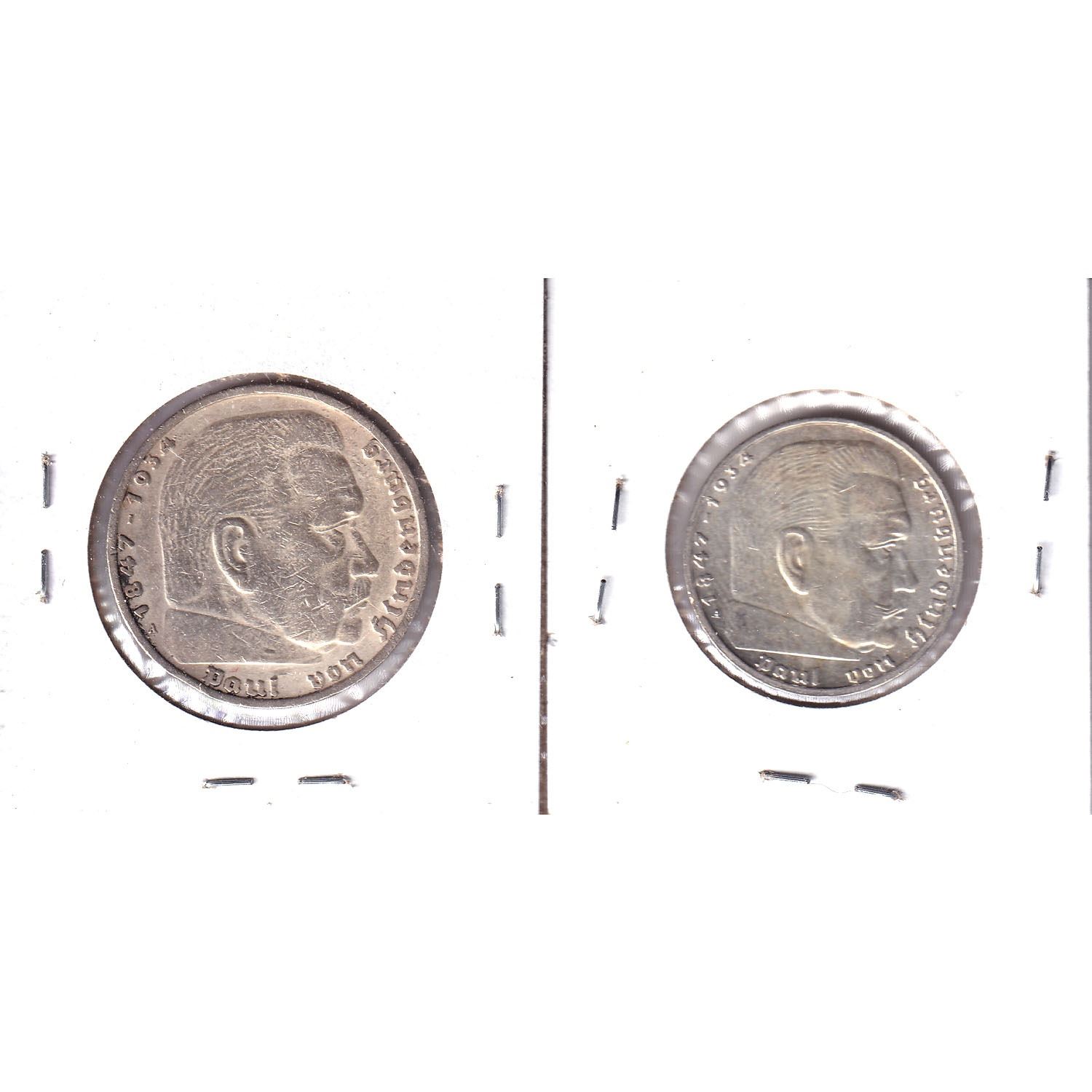 1936A Germany 5 Mark Extra Fine & 1939A Germany 2 Mark Uncirculated. 2pcs