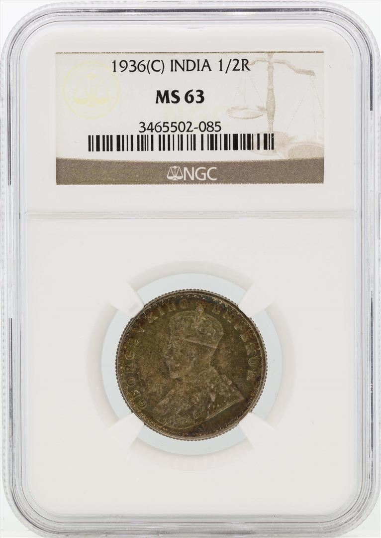 1936C India British King George V 1/2 Rupee Silver Coin NGC MS63