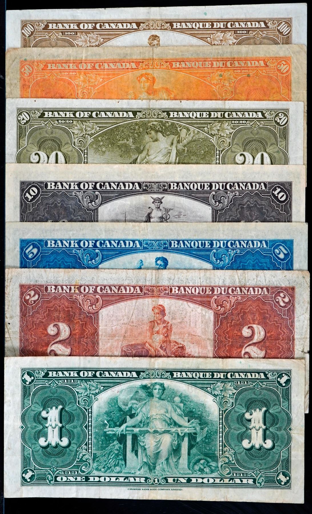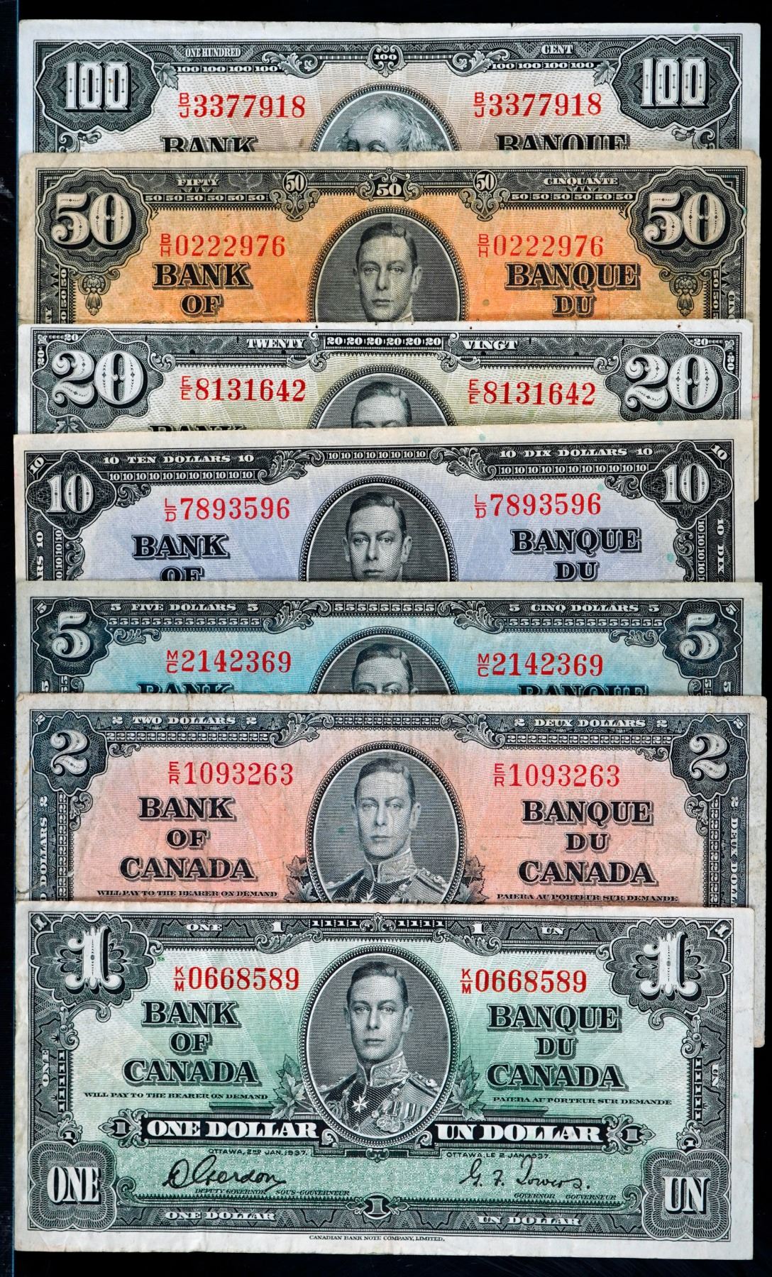 1937 $1-$100 - 7 note Set, All notes about VF or better.