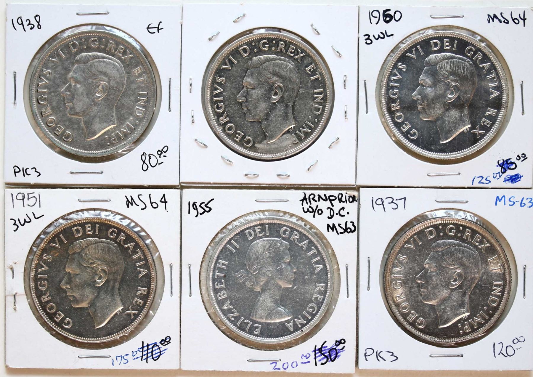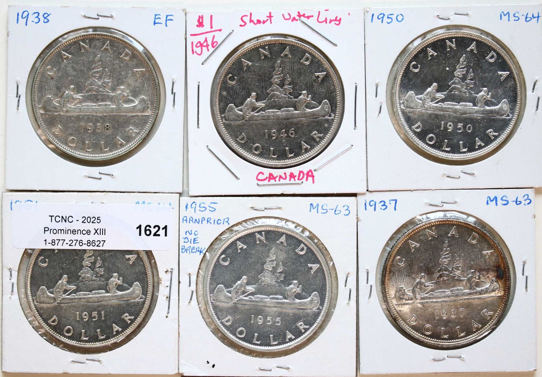 1937 $1, 1938, 1946 "SWL", 1950, 1951, 1955 "Arnp" Lot of 6 coins EF to Choice Uncirculated.