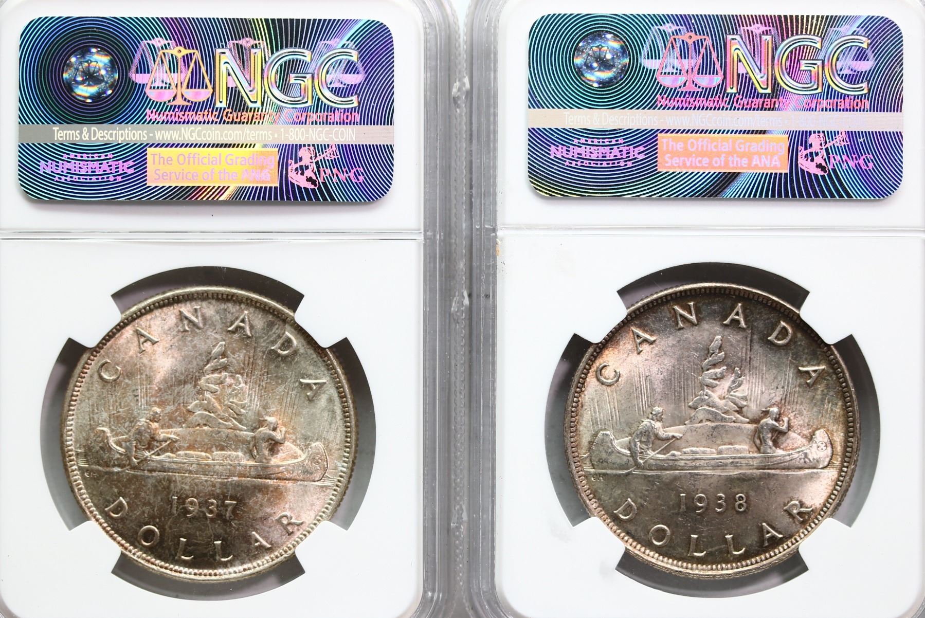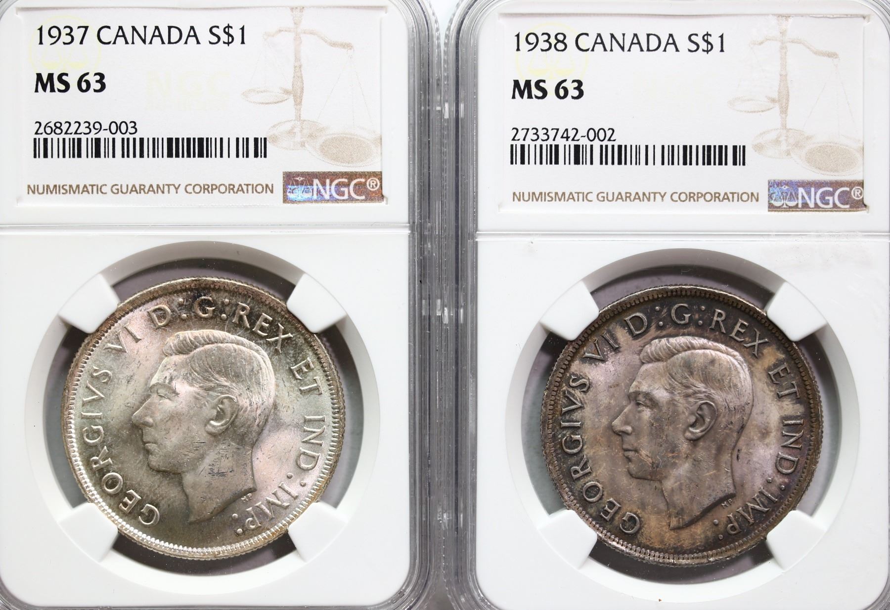 1937 $1, 1938 Both coins NGC Choice Mint State-63, Lot of 2 nice coins.