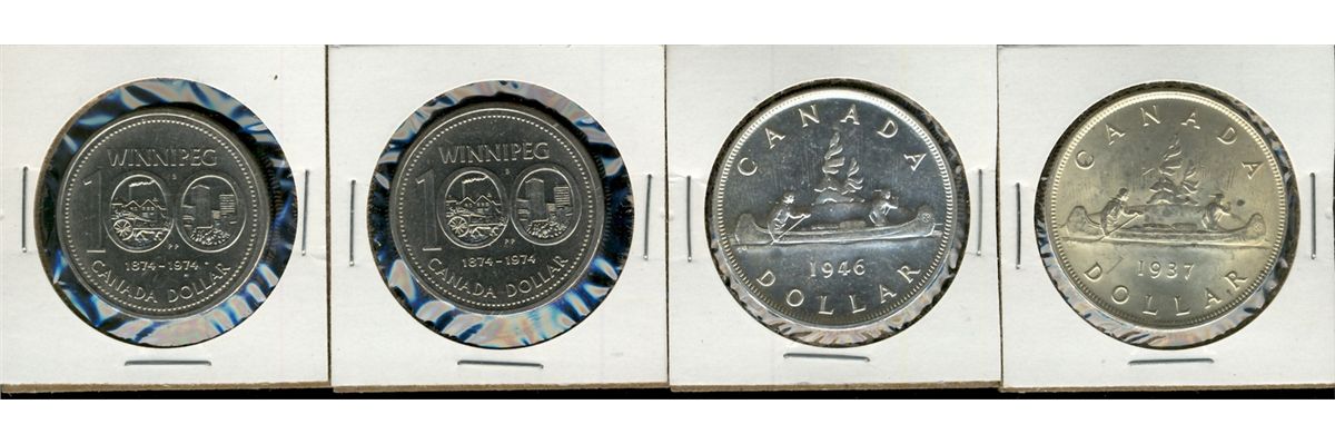 1937 $1, 1946 & 1974 Dbl Yk Nickel Dollars. Lot of 4 coins AU to MS.