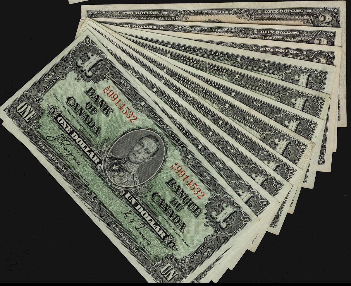 1937 $1 (8) and $2 (3). Lot of 11 notes all VF to AU. Mix signatures.