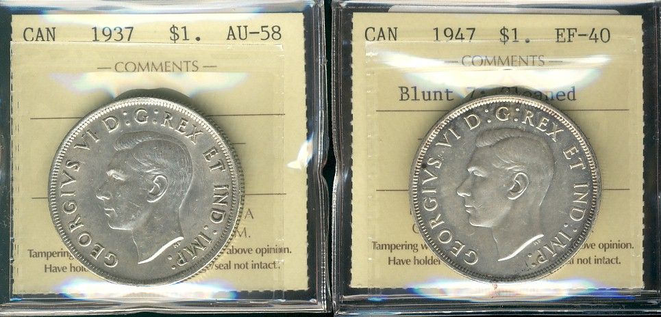 1937 $1 AU58 & 1947 Blt EF40. Lot of 2 coins with 1947 designated as cleaned.
