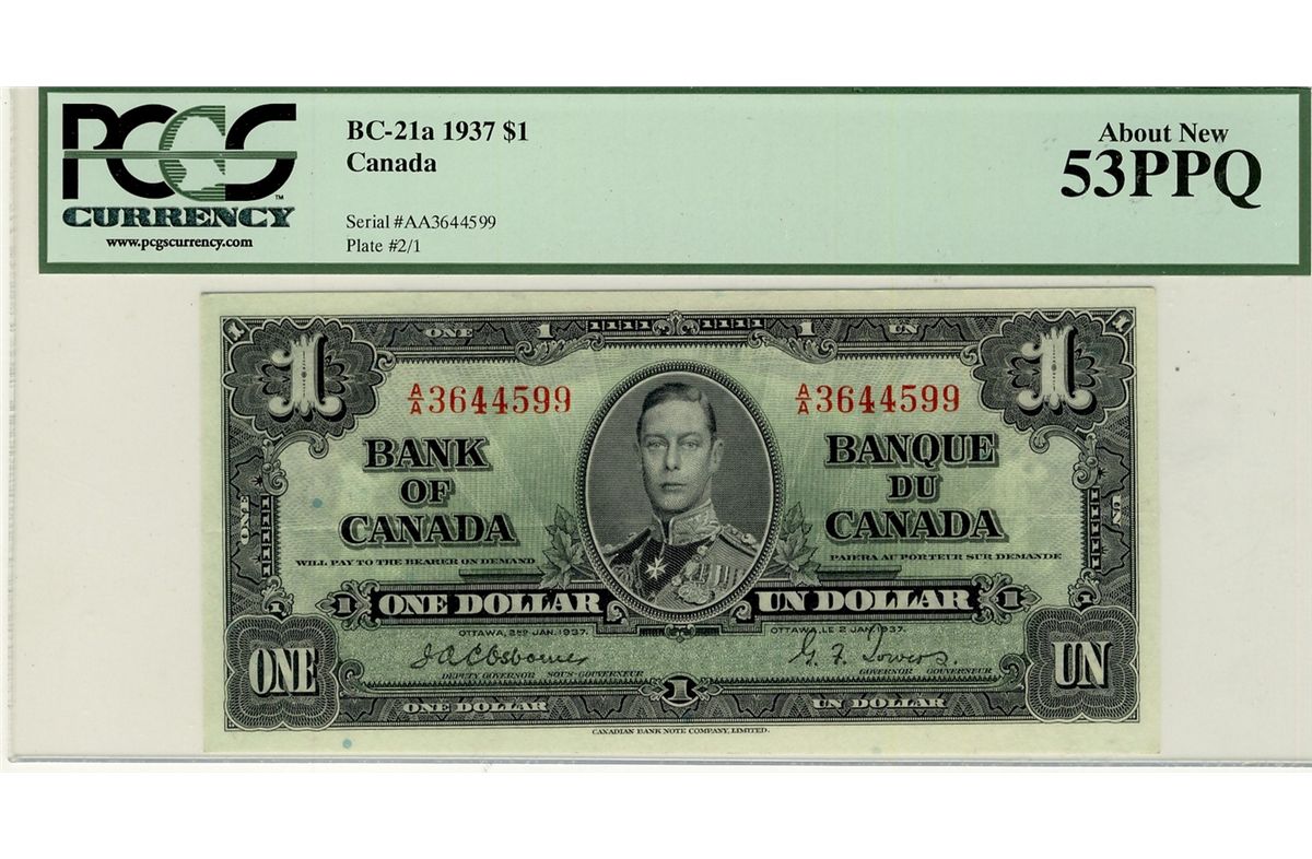 1937 $1 BC-21a #A/A3644599 PCGS AU53PPQ.