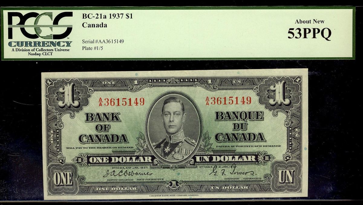 1937 $1 BC-21a #AA3615149 PCGSAU53 PPQ