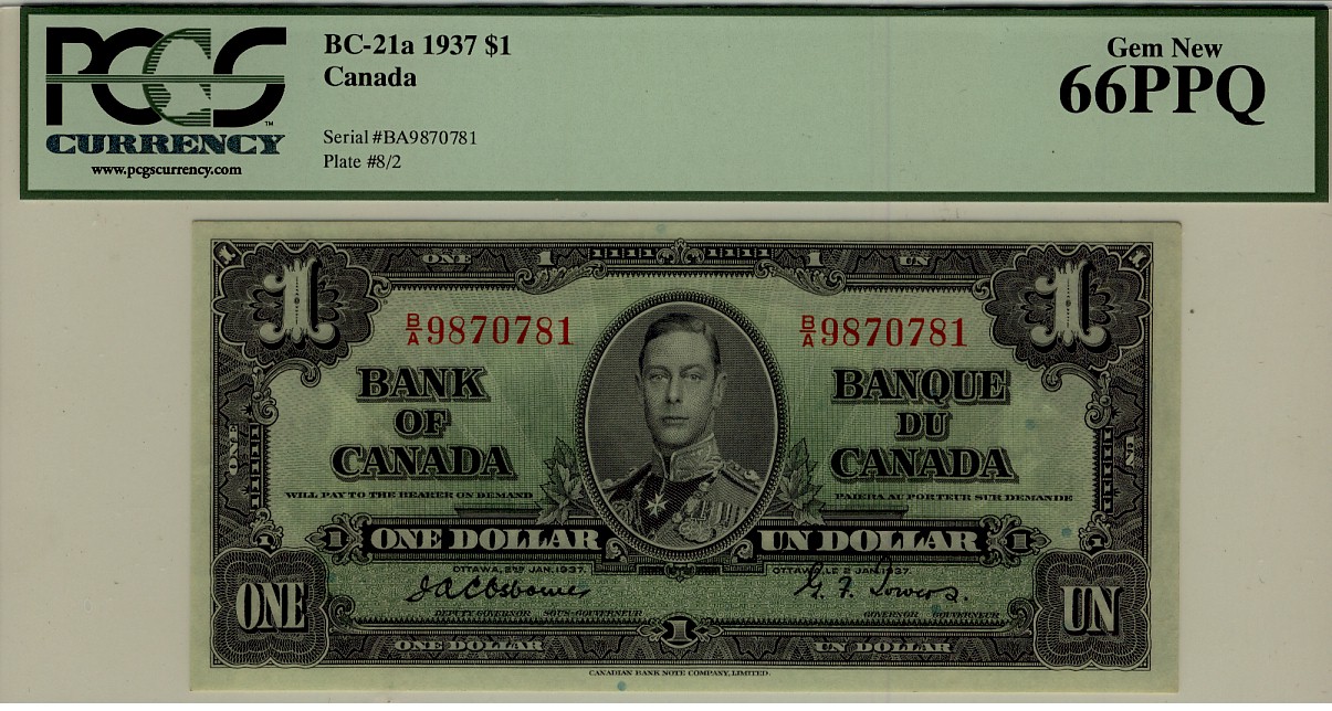 1937 $1 BC-21a B/A9870781 PCGS UNC66PPQ
