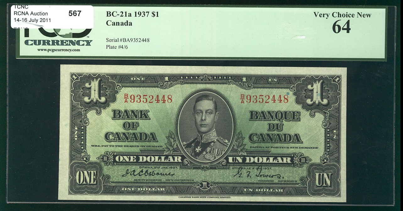 1937 $1 BC-21a #BA9352448, PCGS Choice UNC64.