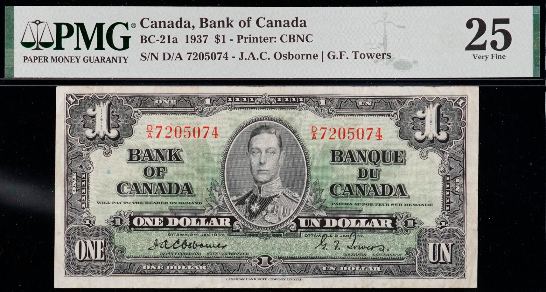 1937 $1 BC-21a #D/A7205074 PMG VF25