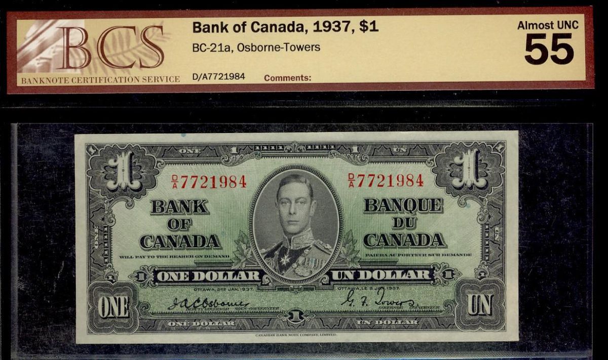 1937 $1 BC-21a #DA7721984 BCS AU55.
