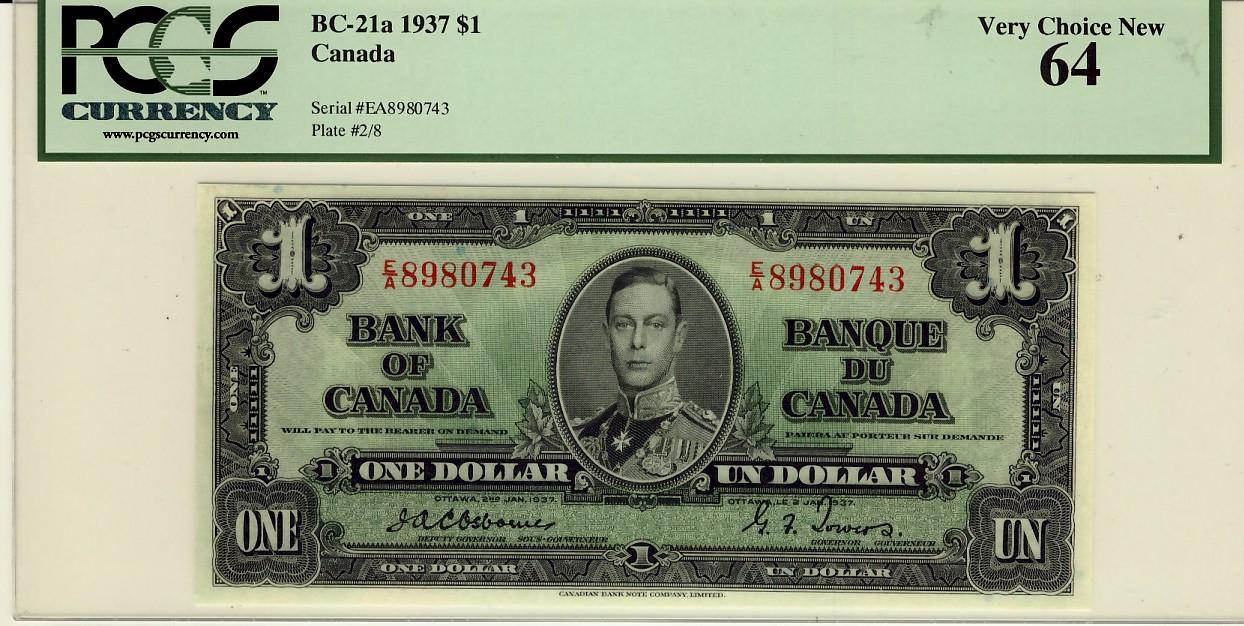 1937 $1 BC-21a E/A8980743 PCGS UNC64