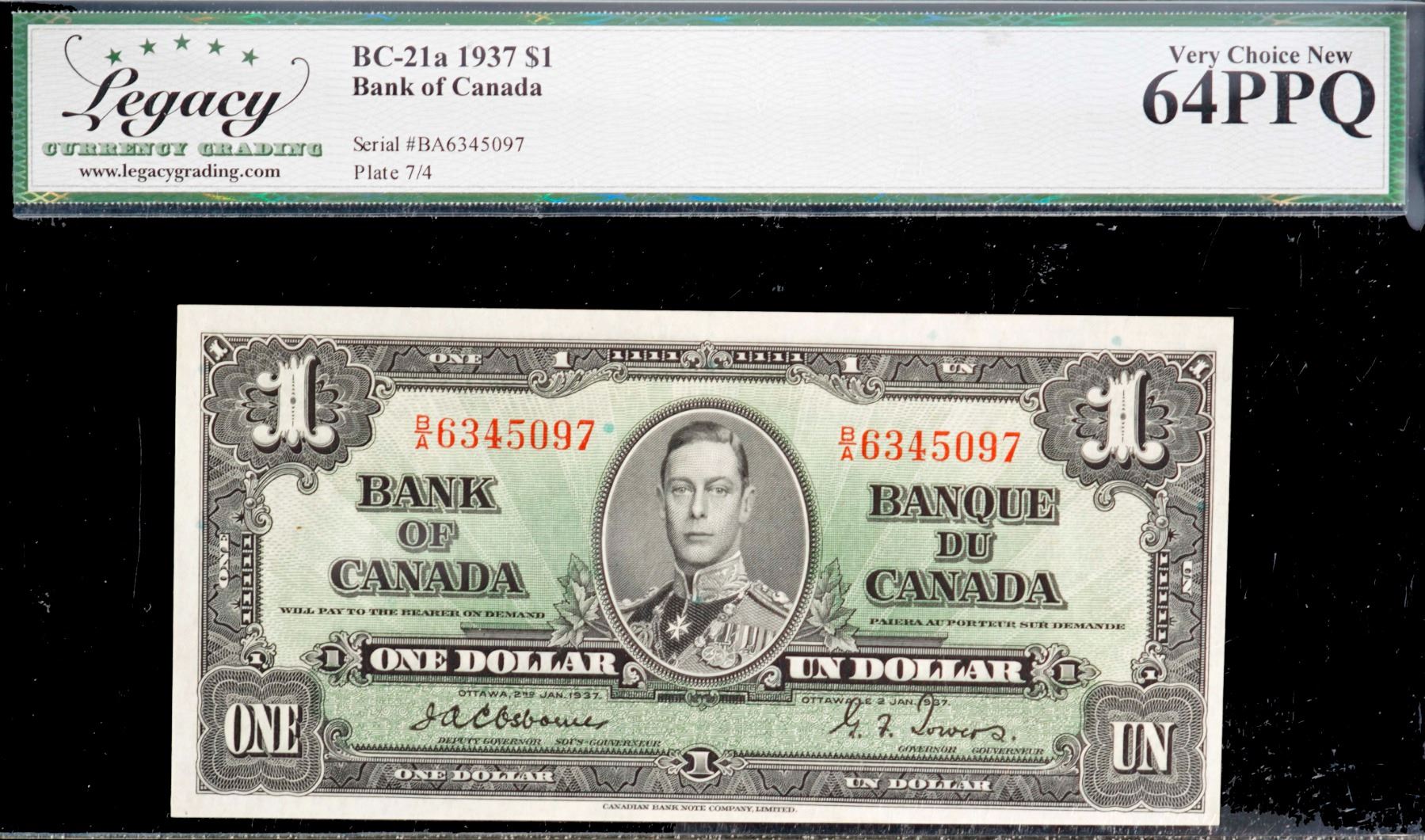1937 $1 BC-21a Osborne-Towers signatures #BA6345097, Legacy Choice Uncirculated-64PPQ.