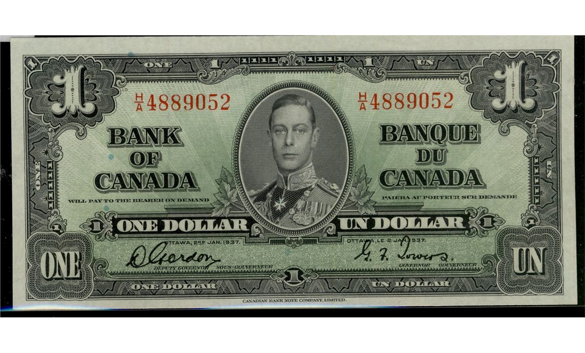 1937 $1 BC-21b #HA4889052, AU/UNC issue.