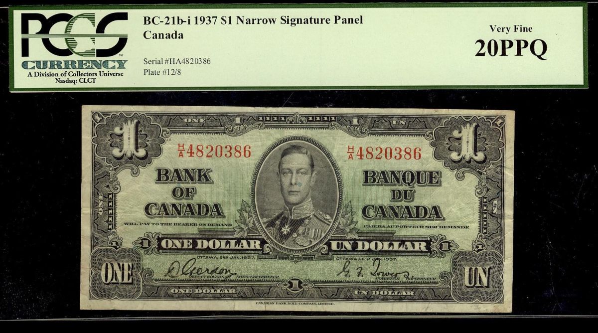 1937 $1 BC-21b-i #HA4820386 Narrow panel PCGS VF20 PPQ