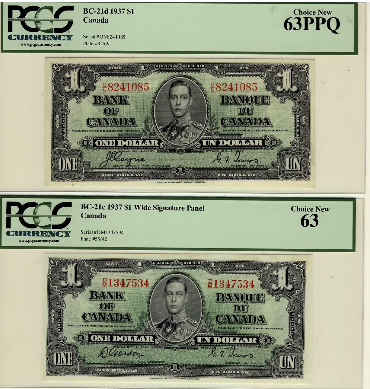 1937 $1 BC-21c D/M1347534, BC-21d U/N8241085 both PCGS UNC63PPQ
