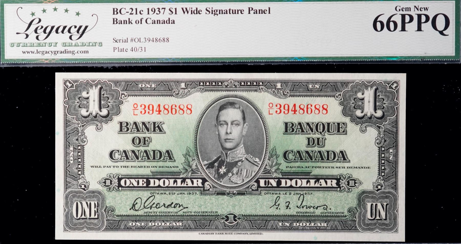 1937 $1 BC-21c #O/L3948688 Legacy Currency Grading Superb Gem Uncirculated-66PPQ, Better prefix.