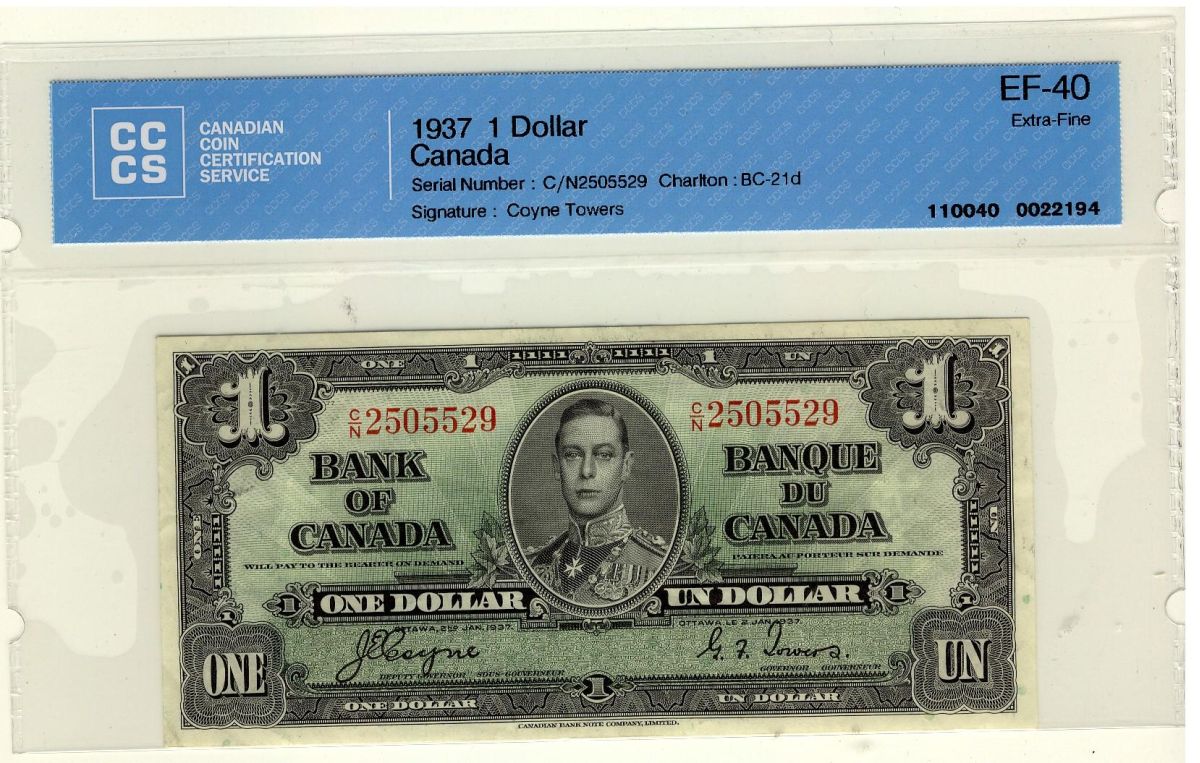1937 $1 BC-21d /CN2505529, CCCS EF40