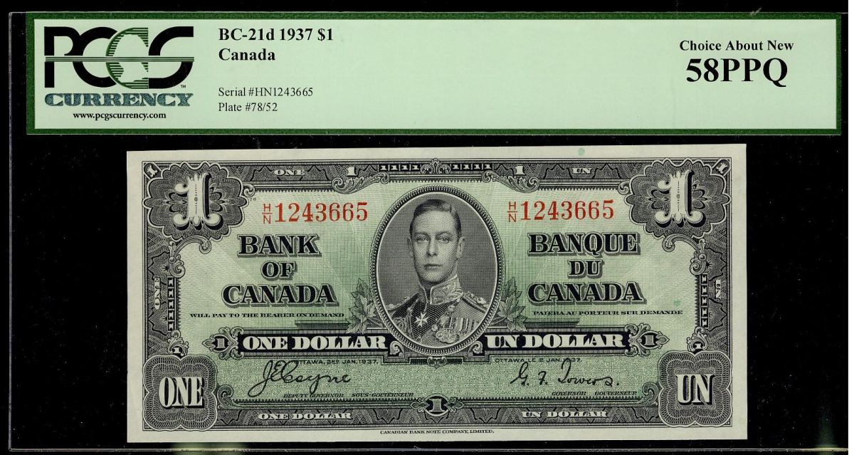 1937 $1 BC-21d #H/N1243665 PCGS AU58PPQ