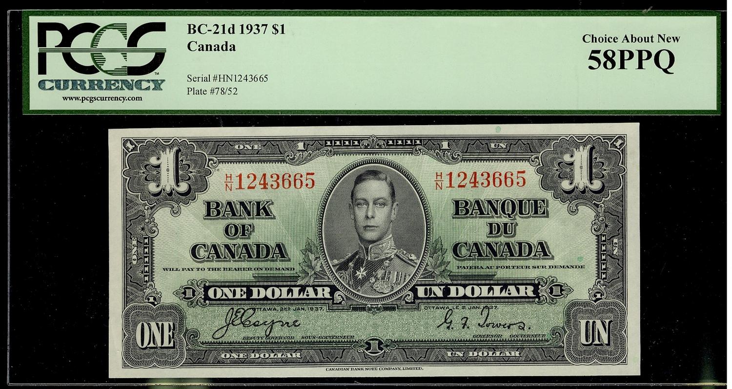 1937 $1 BC-21d #H/N1243665 PCGS AU58PPQ
