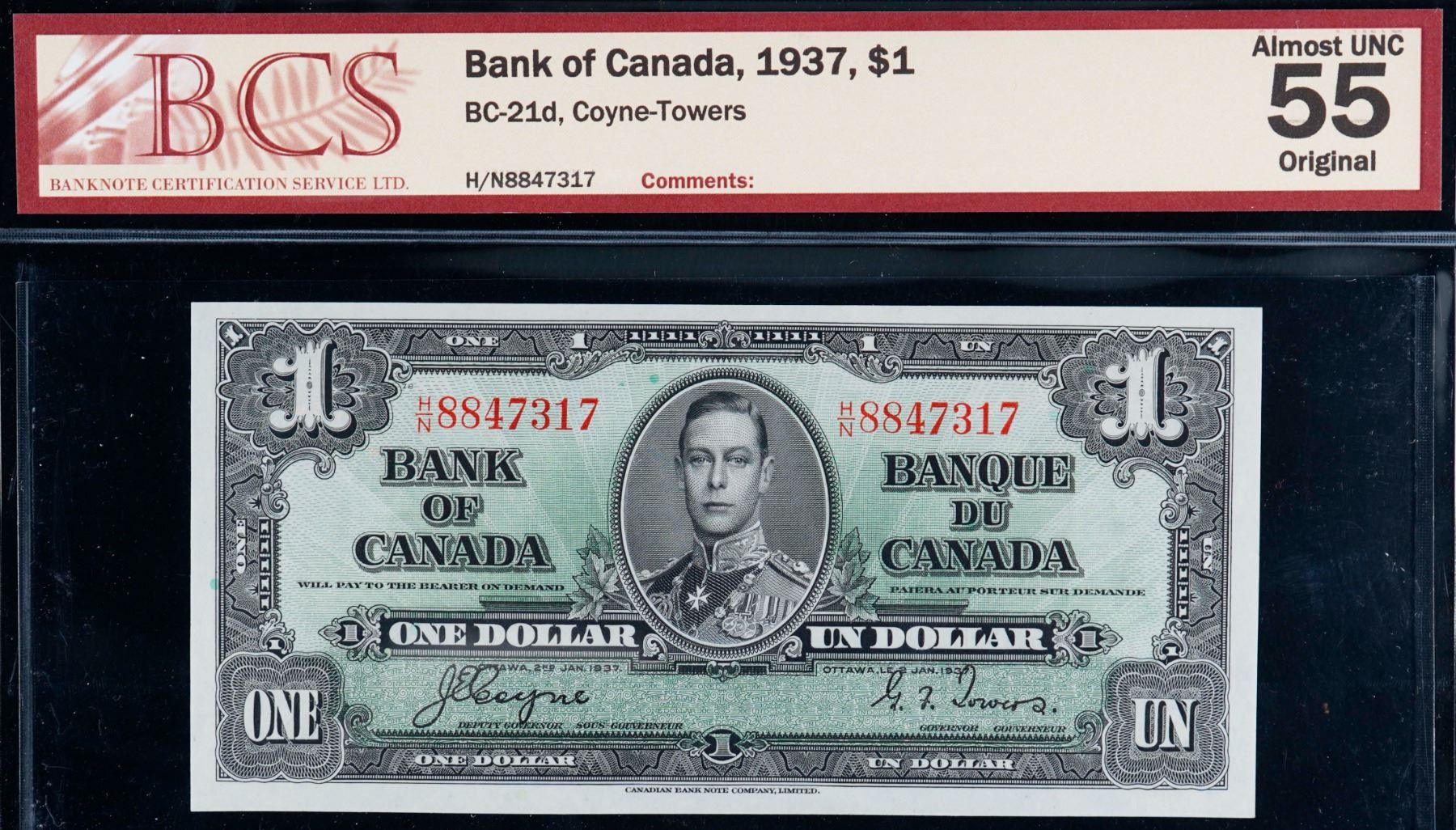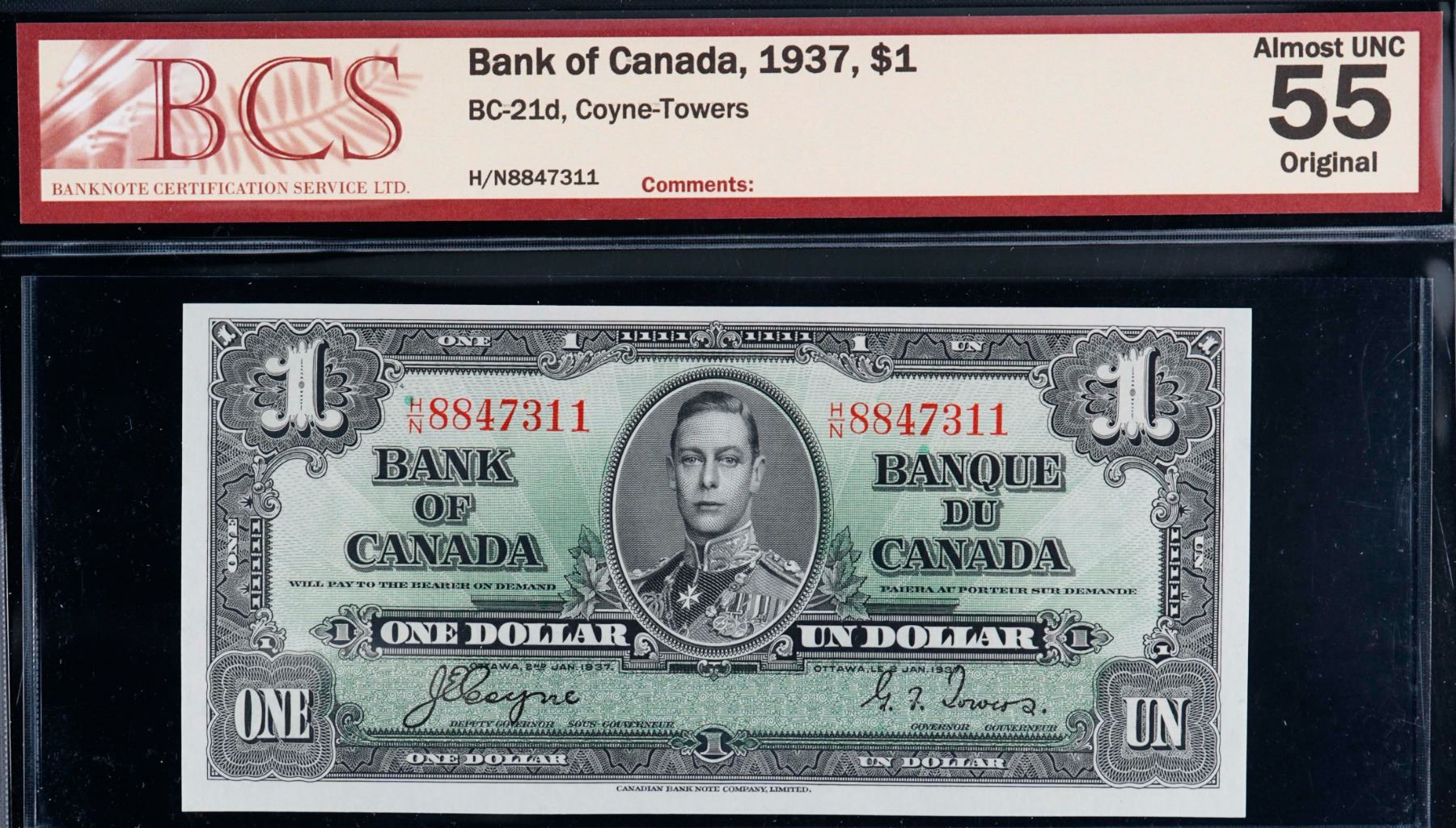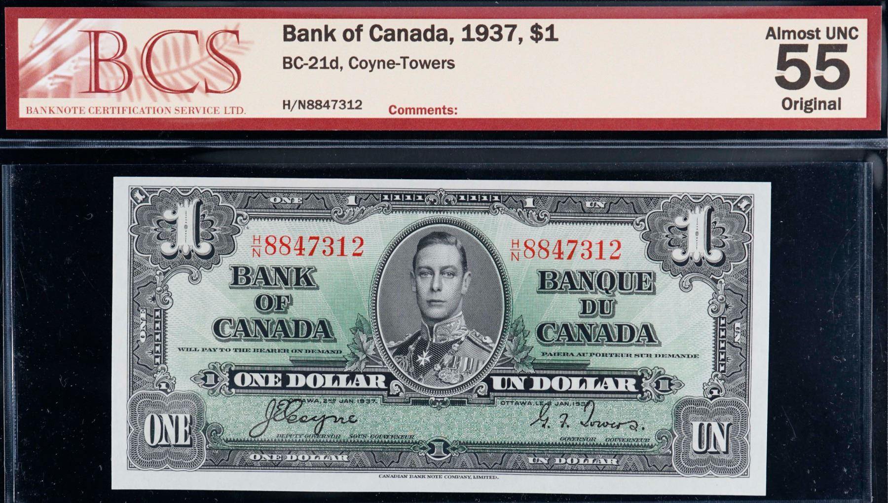 The cataloguer has taken every reasonable measure to ensure that all of the lots in this sale are as described and genuine. All raw coins and banknotes have been graded by the cataloger or the auction house which represent our best professional opinion. To grade coins and banknotes, we use Canadian grading standards, 42 years of experience and good conscience. However, grading is a subjective description in the opinion of the cataloger or the auction house. Among experts there are often differences of opinion on the grading and the eye appeal of a coin. The strike and the state of preservation are often debated. The Canadian Numismatic Company acts as an agent between consignors and buyers. The Canadian Numismatic Company does not guarantee that any coin or banknote cataloged will meet the standards, or the grade, of any third party grading companies. No warranty, whether impressed or implied. Items are as is, no warranty given. We cannot accept responsibility and waive all liability resulting in financial losses, and or incidentals accruing from the sale of any items, nor can we guarantee that items graded by third party services will grade the same if submitted to a different grading service or re-submitted to the same company. Statements by The Canadian Numismatic Company regarding the condition, the eye appeal, the strike and the population of items are for guidance only. All lots offered are sold "AS IS". Title to all lots remains with the auction house until paid for in full by the purchaser. But they are held at the risk of the purchaser once the time of the sale.