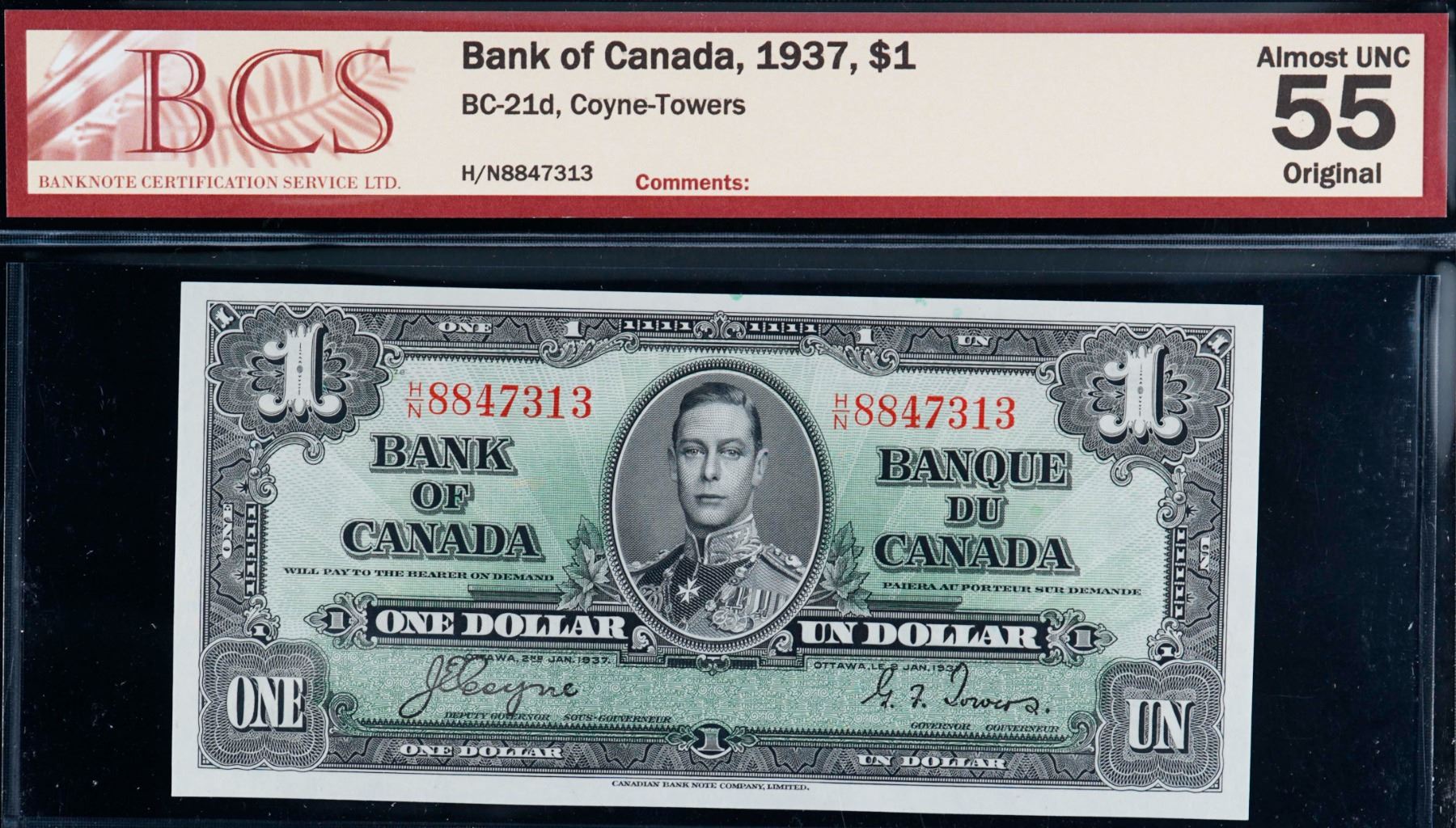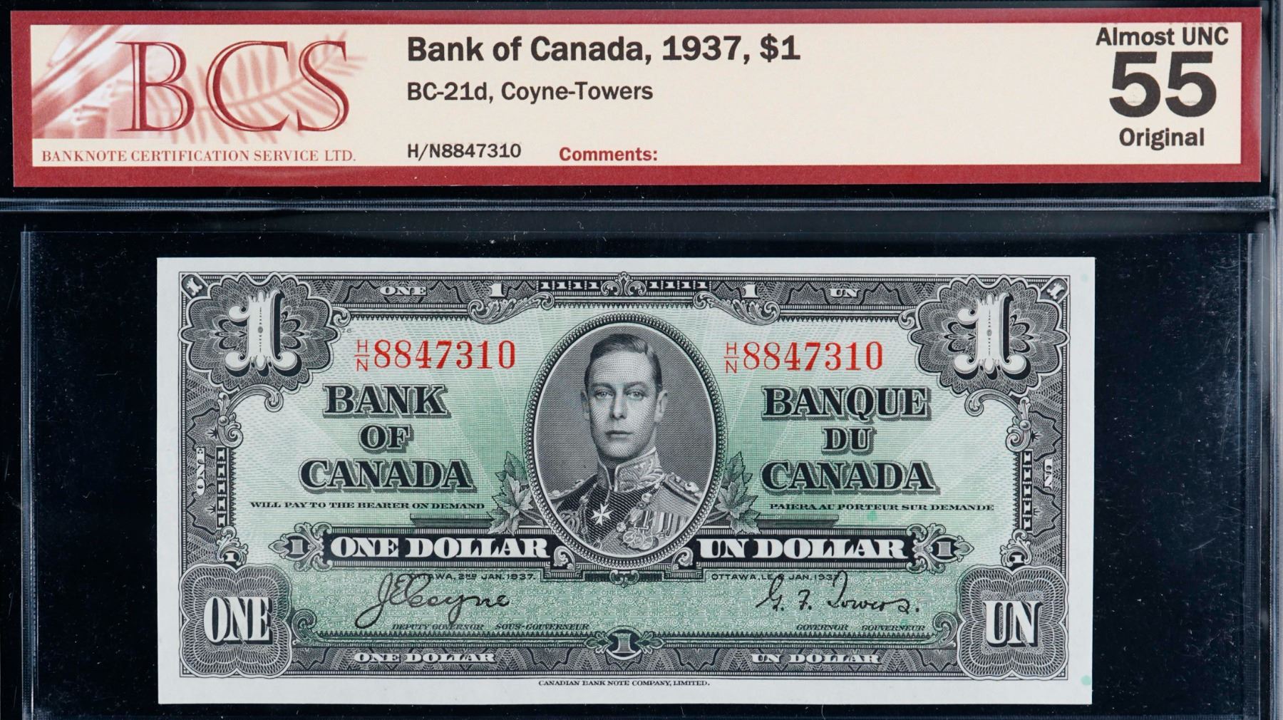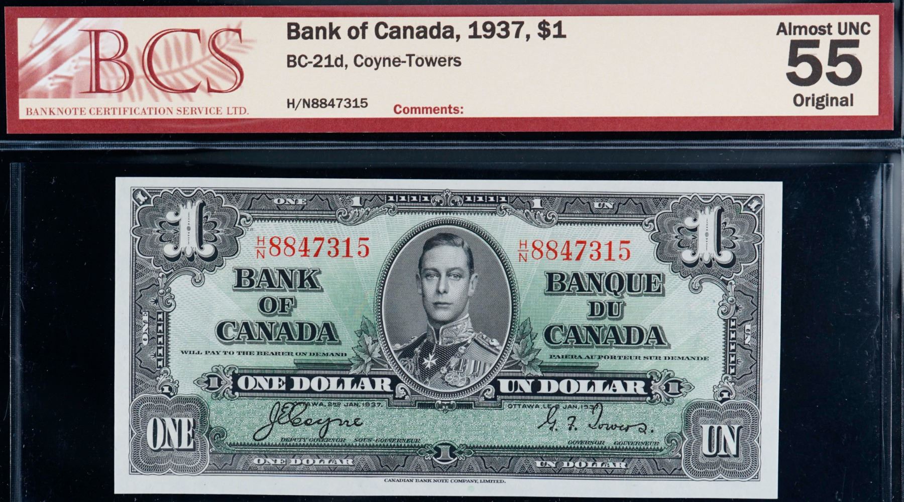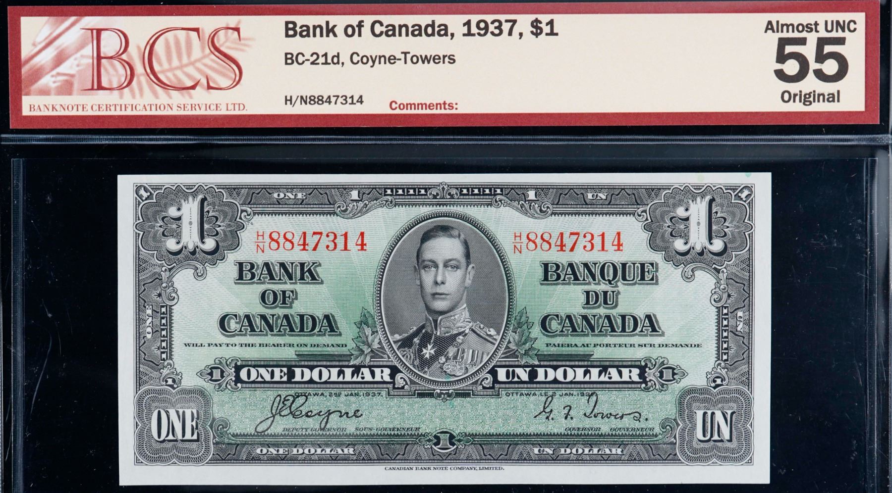 The cataloguer has taken every reasonable measure to ensure that all of the lots in this sale are as described and genuine. All raw coins and banknotes have been graded by the cataloger or the auction house which represent our best professional opinion. To grade coins and banknotes, we use Canadian grading standards, 42 years of experience and good conscience. However, grading is a subjective description in the opinion of the cataloger or the auction house. Among experts there are often differences of opinion on the grading and the eye appeal of a coin. The strike and the state of preservation are often debated. The Canadian Numismatic Company acts as an agent between consignors and buyers. The Canadian Numismatic Company does not guarantee that any coin or banknote cataloged will meet the standards, or the grade, of any third party grading companies. No warranty, whether impressed or implied. Items are as is, no warranty given. We cannot accept responsibility and waive all liability resulting in financial losses, and or incidentals accruing from the sale of any items, nor can we guarantee that items graded by third party services will grade the same if submitted to a different grading service or re-submitted to the same company. Statements by The Canadian Numismatic Company regarding the condition, the eye appeal, the strike and the population of items are for guidance only. All lots offered are sold "AS IS". Title to all lots remains with the auction house until paid for in full by the purchaser. But they are held at the risk of the purchaser once the time of the sale.