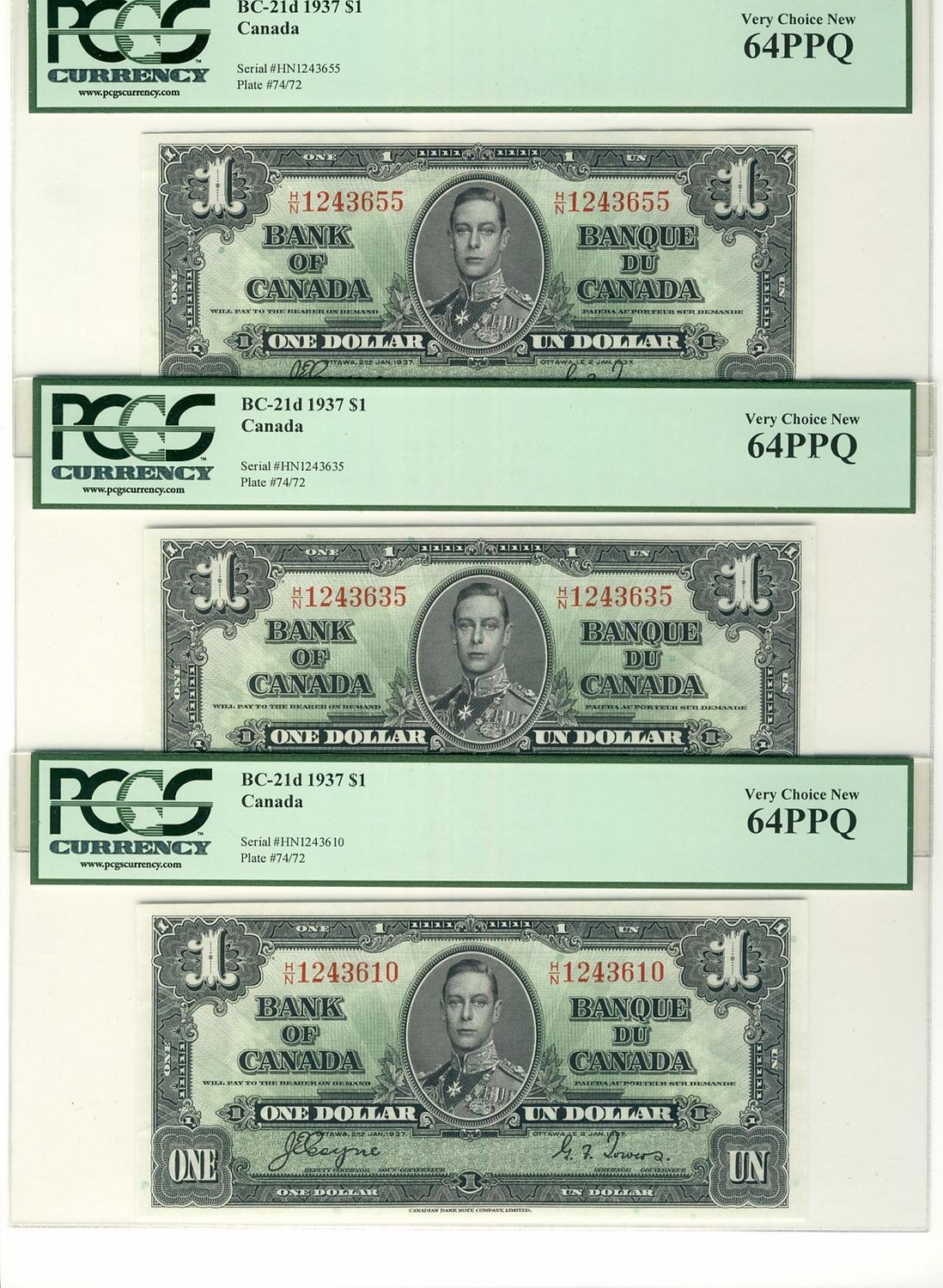 1937 $1 BC-21d PCGS UNC64 PPQ. Lot of 3 notes.