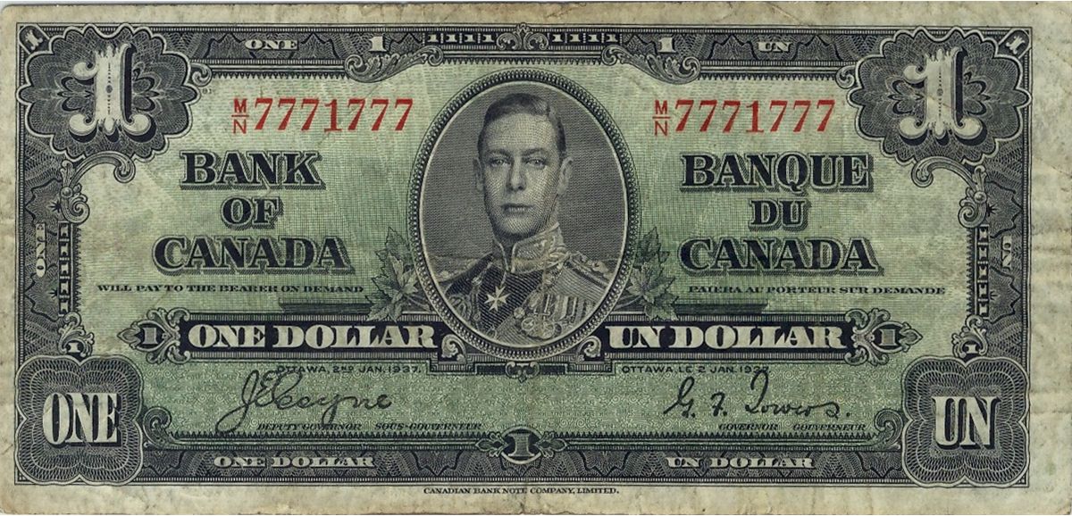 1937 $1 BC-21d RADAR #7771777 PMG VF25. Rare for the year of issue.