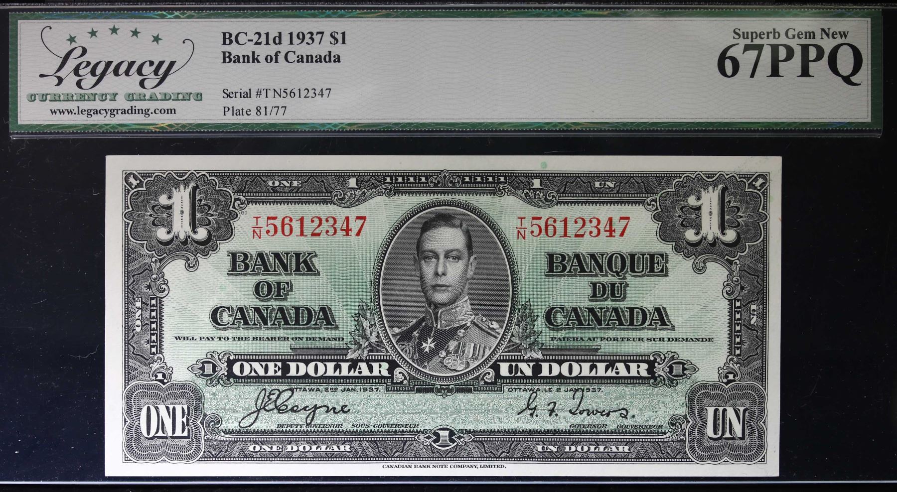 1937 $1 BC-21d #T/N5612347 LCG Superb Gem Uncirculated-67PPQ