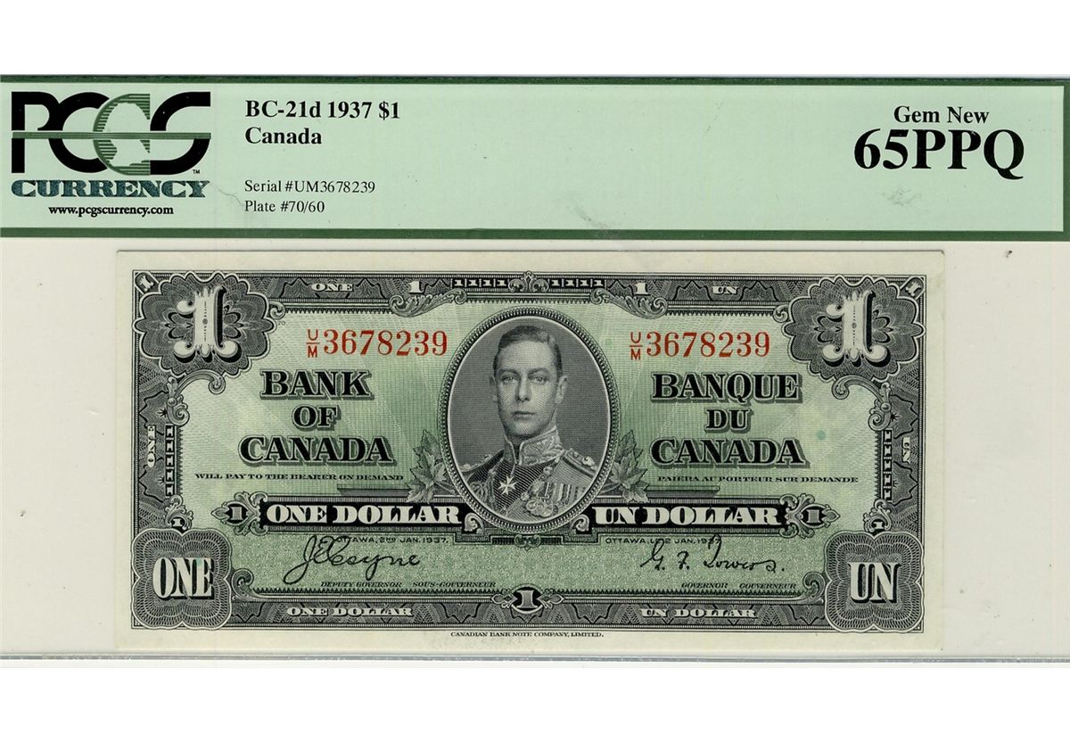 1937 $1 BC-21d #U/M3678239 PCGS UNC65PPQ.