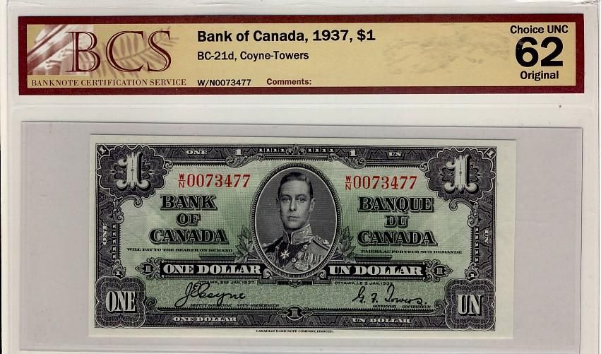 1937 $1 BC-21d #WN0073477. BCS CH UNC62.