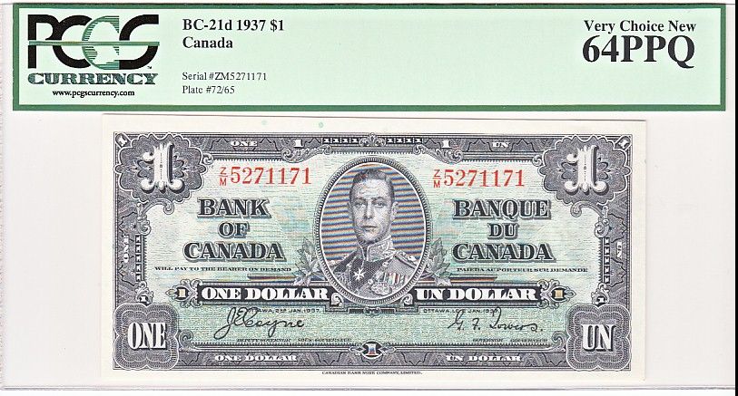 1937 $1 BC-21d #ZM5271171 PCGS CH UNC64PPQ.