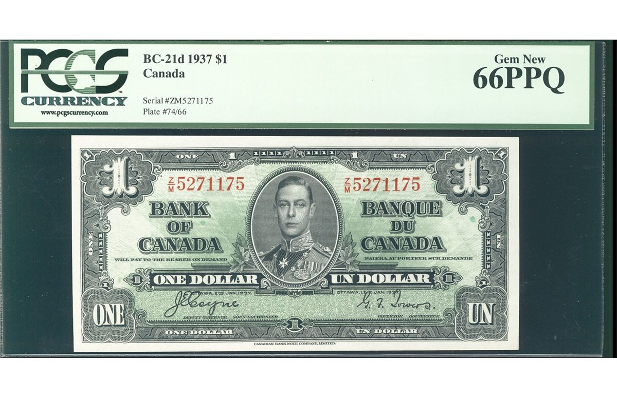 1937 $1 BC-21d #ZM5271175 PCGS GEM UNC66PPQ. A great example. Flashy.