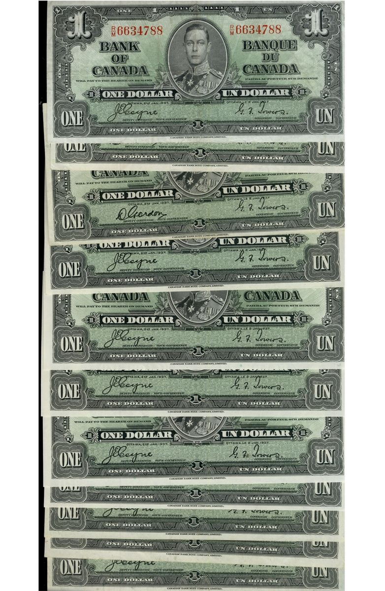1937 $1 Banknote Lot; includes 12 $1 issues VF to EF.