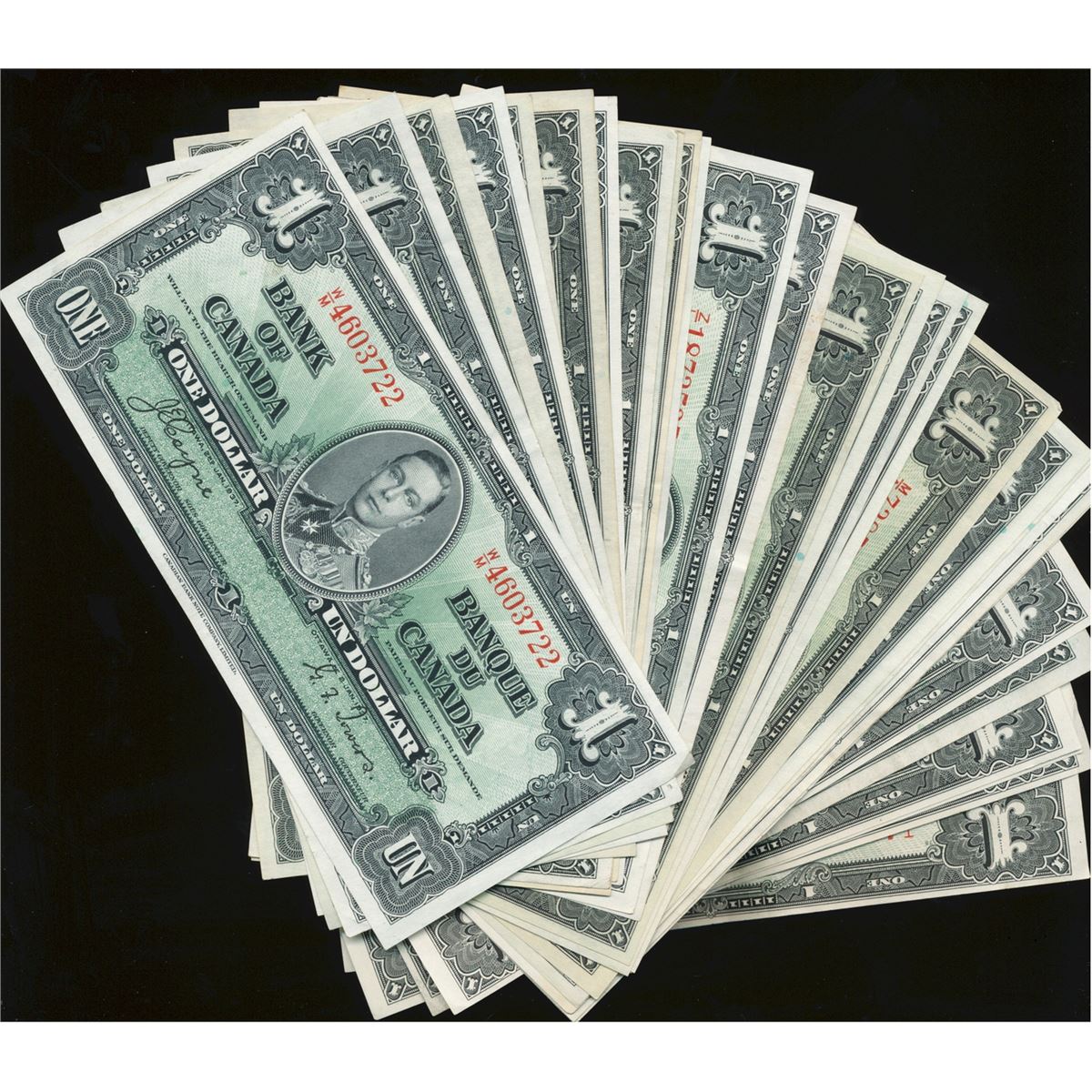 1937 $1 Banknote Lot; includes 28 pcs with an average AU for grades.