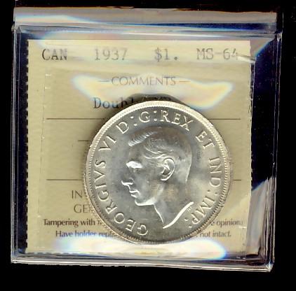 1937 $1 Dbl HP ICCS MS64.