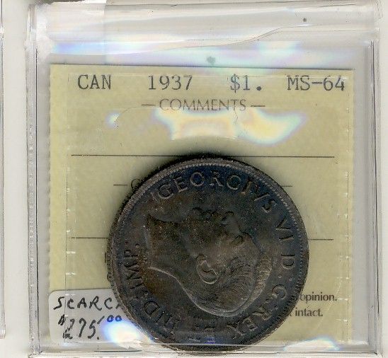 1937 1 Dollars, ICCS MS64; Nicely toned.
