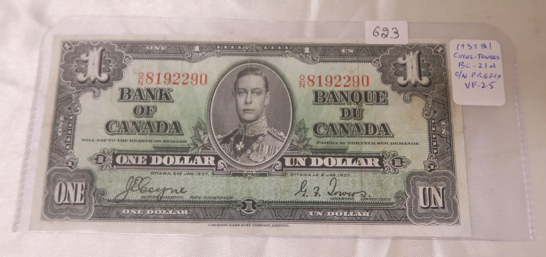 1937 $1. George VI. Coyne-Towers signatures. O/N Prefix. BC-21d. VF-25.