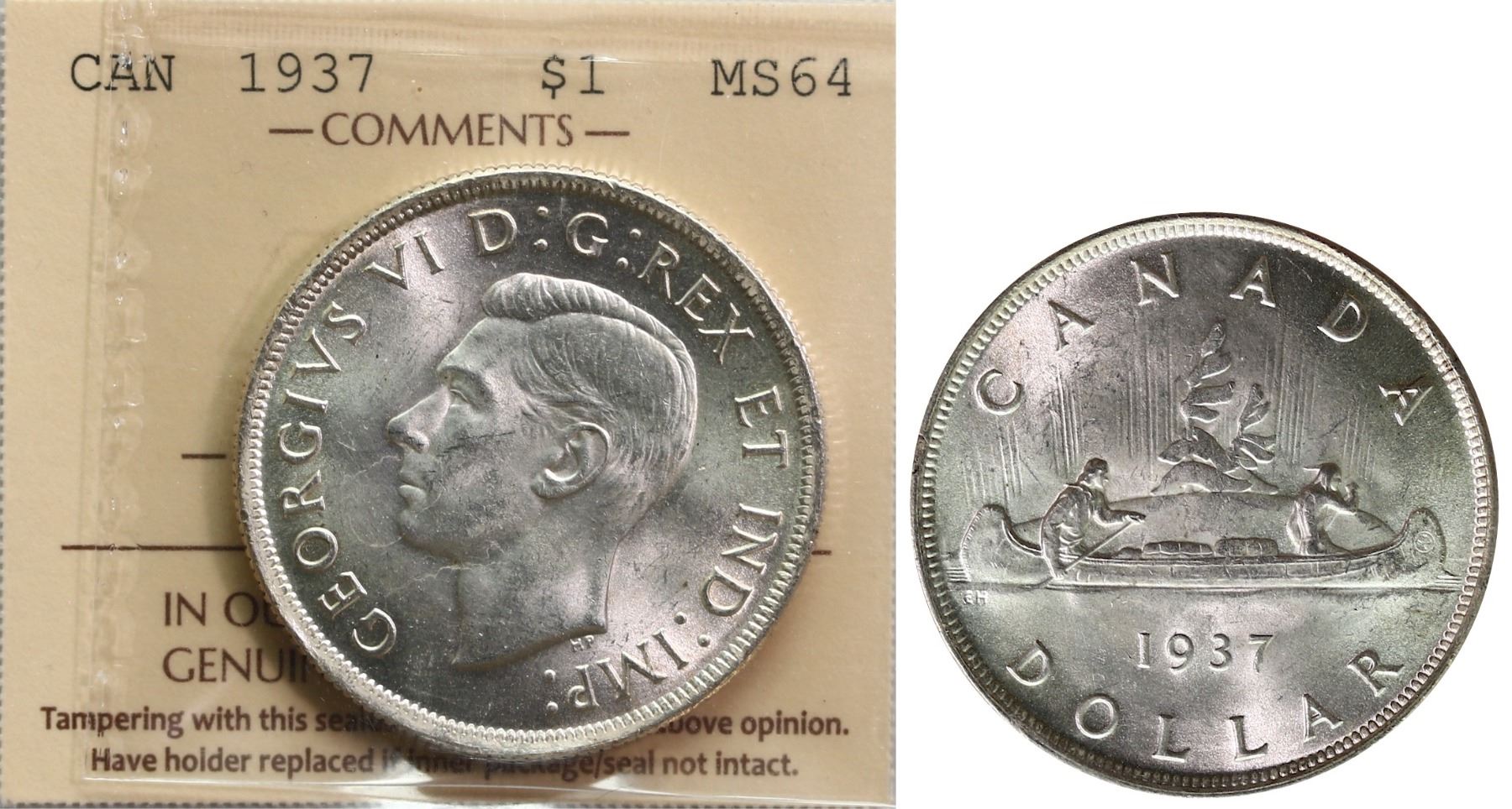 1937 $1 ICCS Choice Mint State-64 Fully brilliant and lustrous.