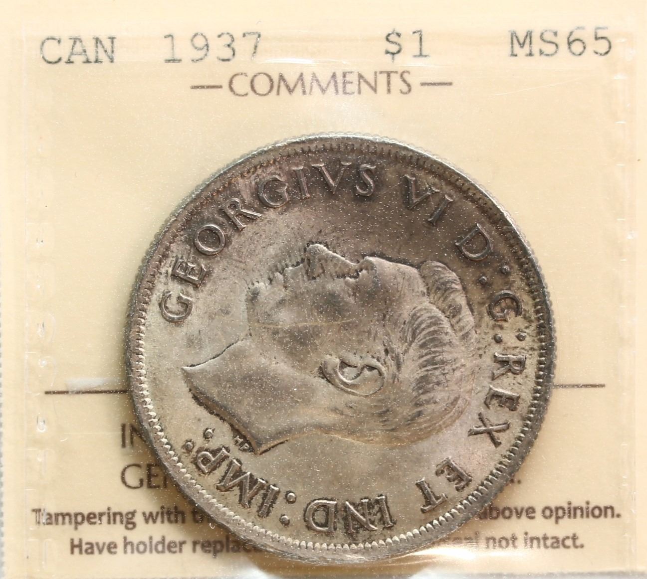 1937 $1 ICCS Gem Mint State-65. Lightly toned.