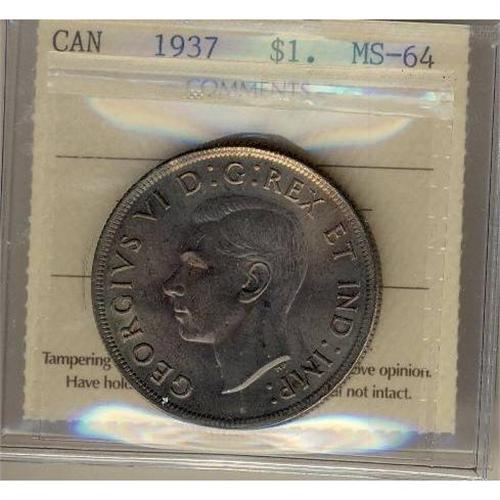 1937 $1 ICCS MS64. A superb piece with bluish purple tone.