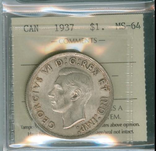 1937 $1 ICCS MS64. PQ looking coin with light creamy tone and lots of underlying lustre.