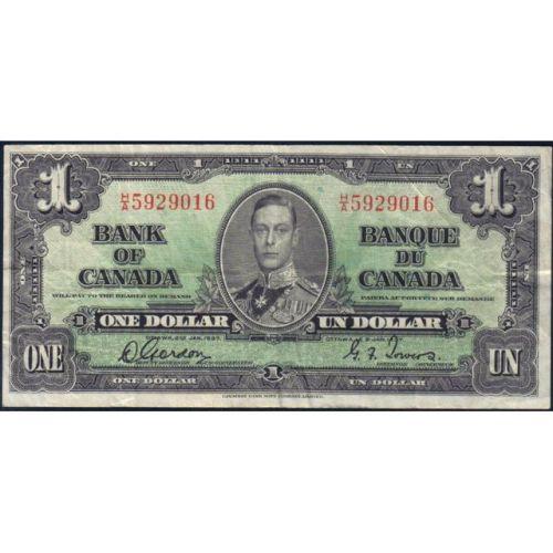 1937 One Dollar Gordon-Towers Narrow Panel, BC-21b Serial Number H/A5929016, PMG Very Fine-30 EPQ. A bit off centre to the left
