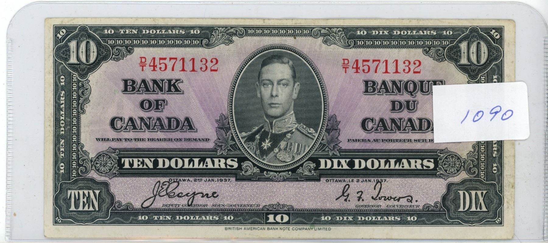1937 - $10.00Note #DT4571132 signed by JE Coyne & GF Towers - Very Good Condition
