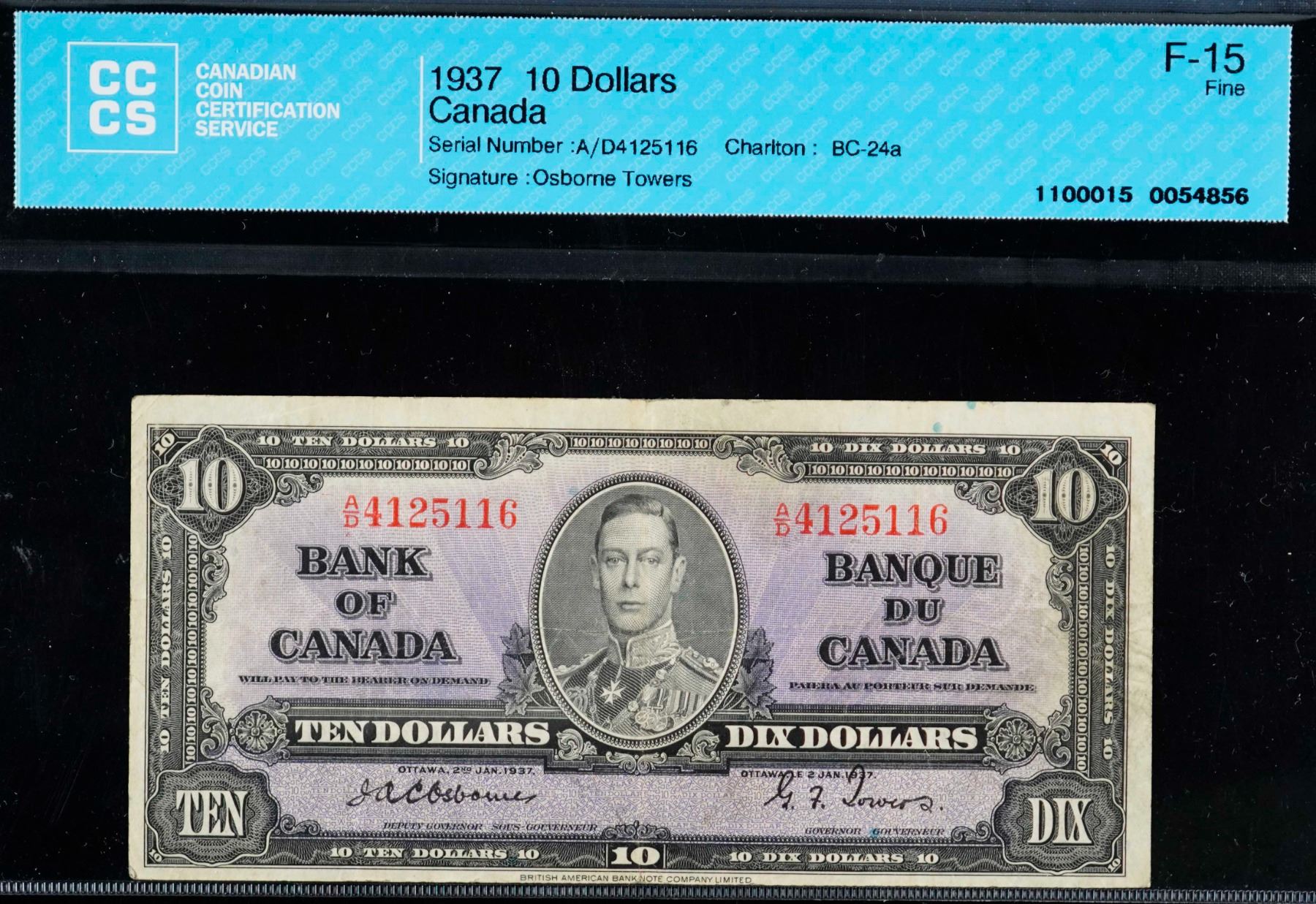 1937 $10 BC-24a, 24b, Lot of 2 notes CCCS F15 & EF40 respectively.